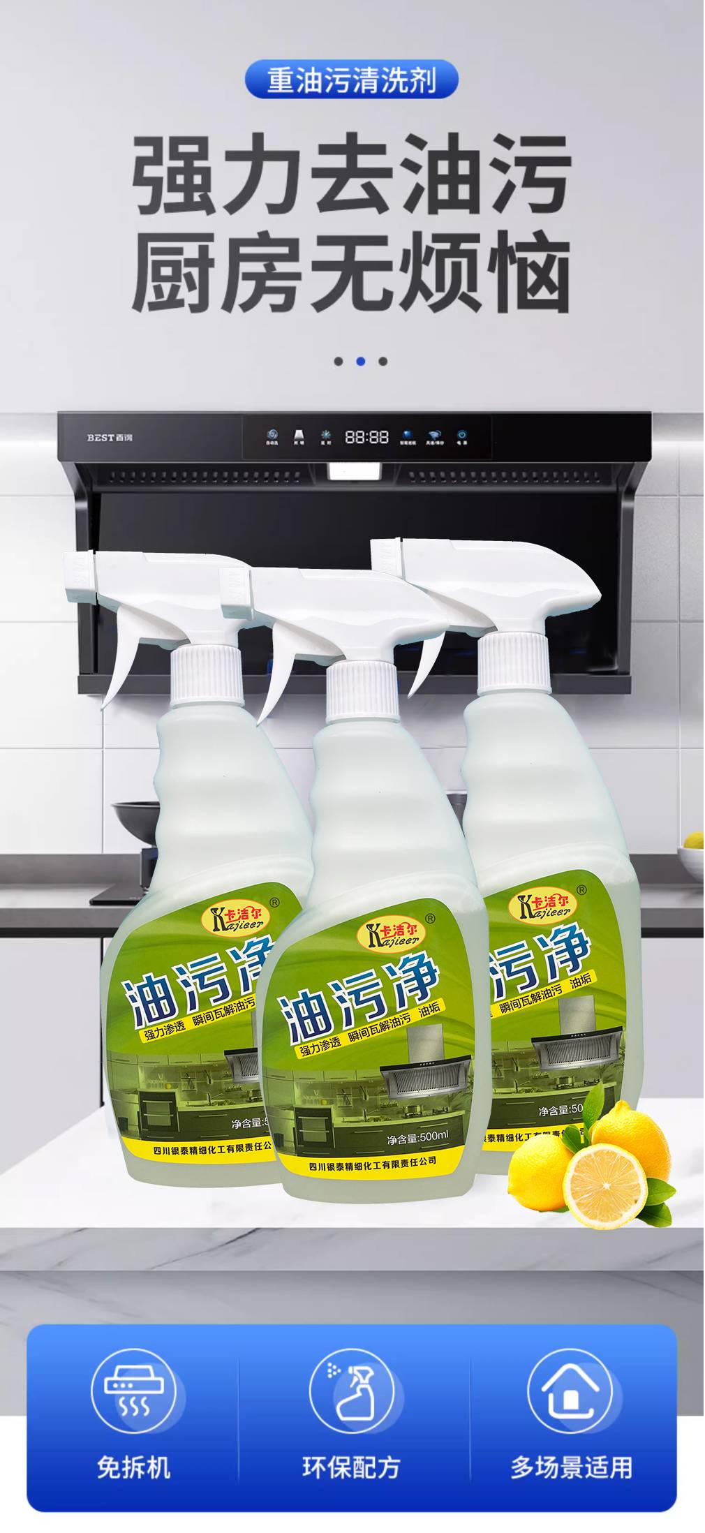 卡洁尔洗油烟机清洗剂去污强力泡沫清洁剂厨房油污净多功能