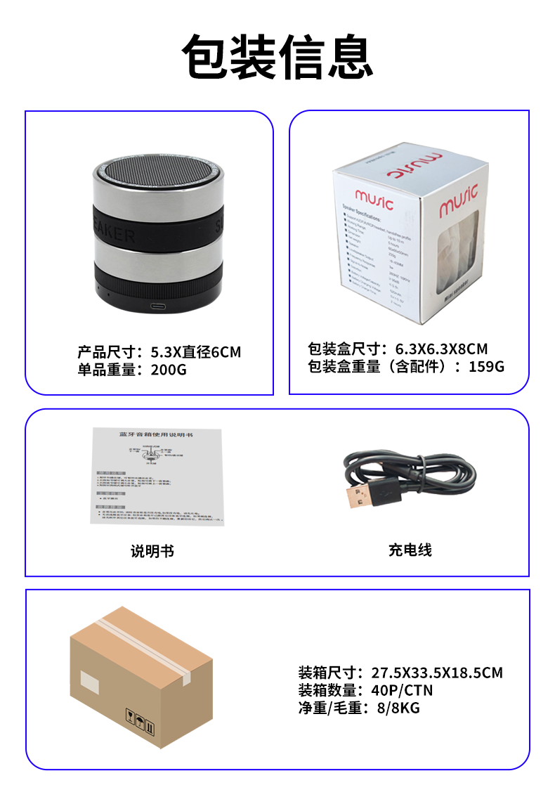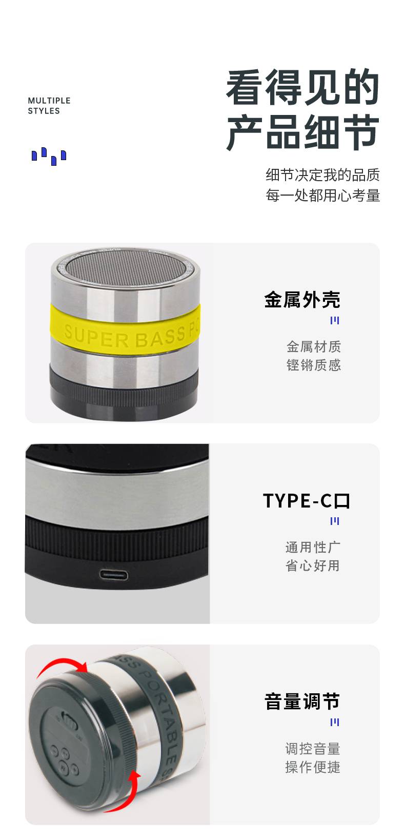 优创锐跨境私模新款促销礼品金属音响便携式低音炮无线蓝牙音箱