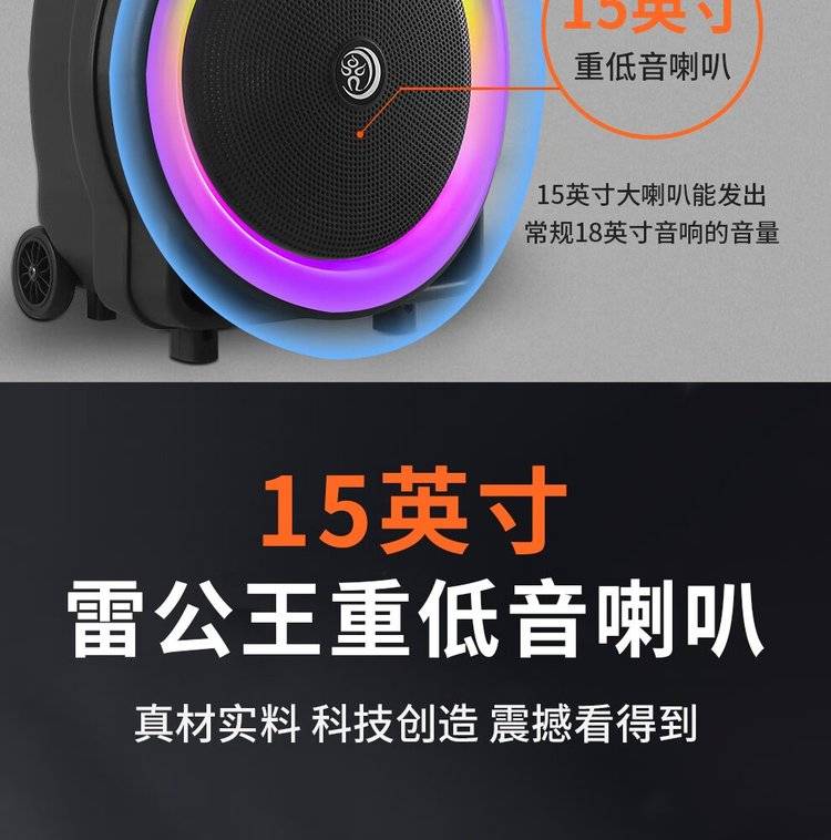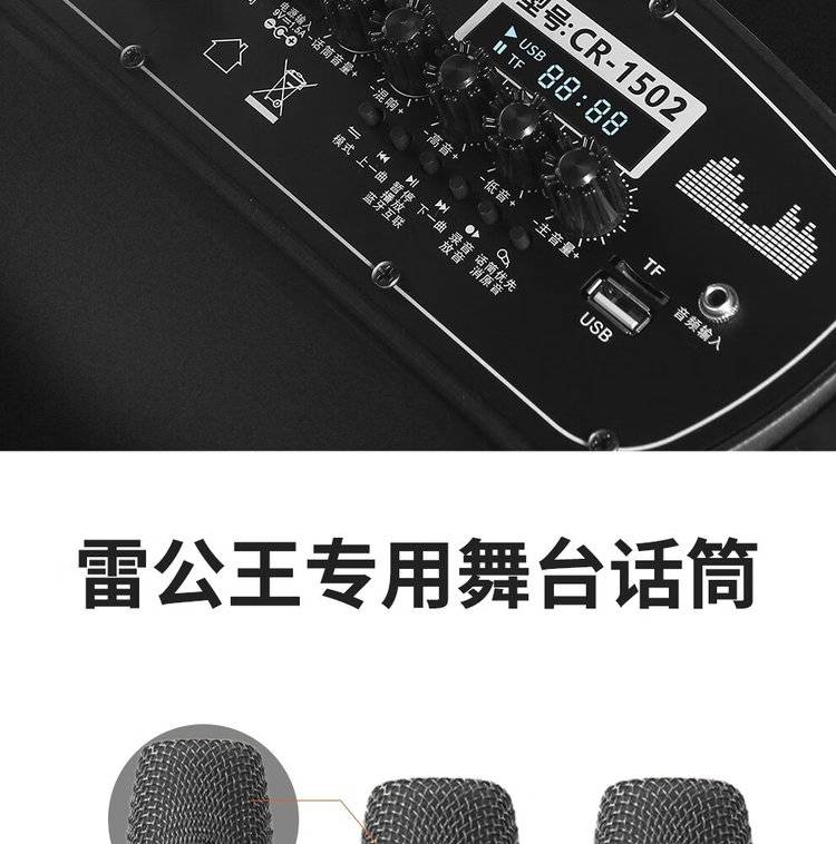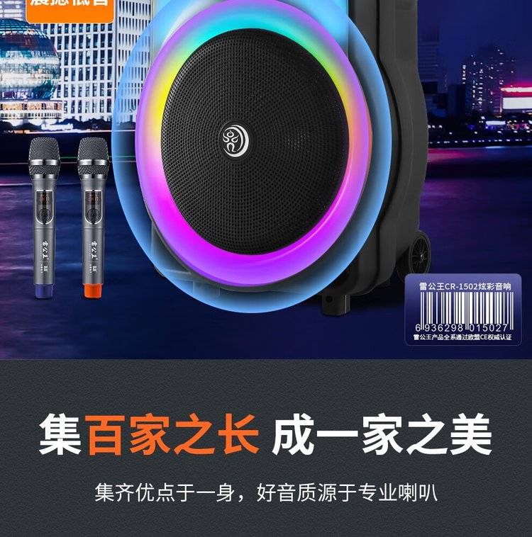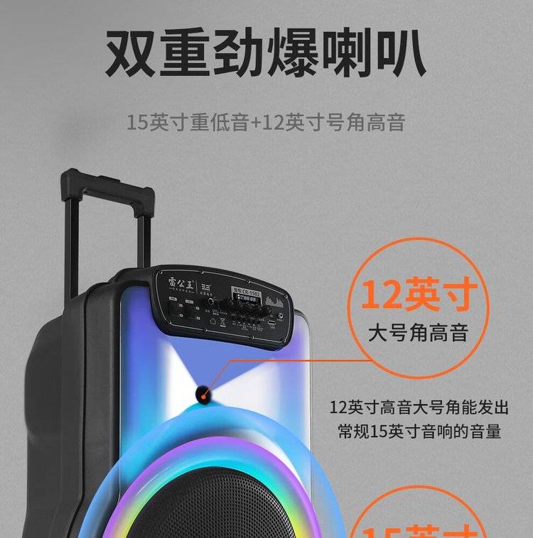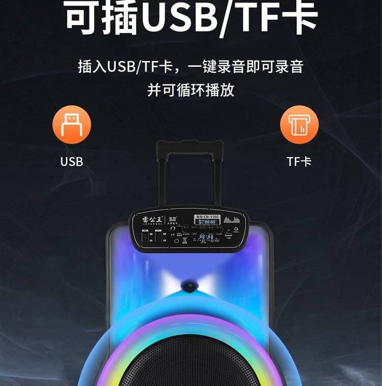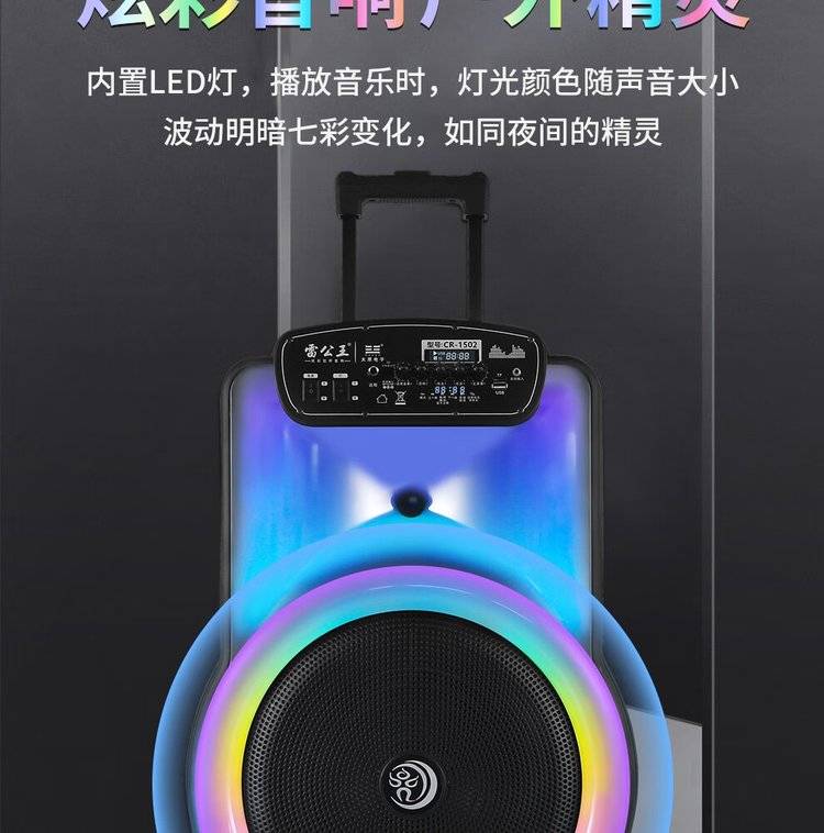 雷公王CR-1502广场舞音响移动拉杆音箱RGB音箱无线话筒户外扩音器
