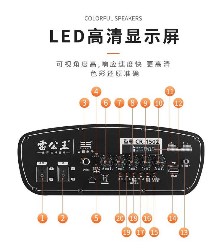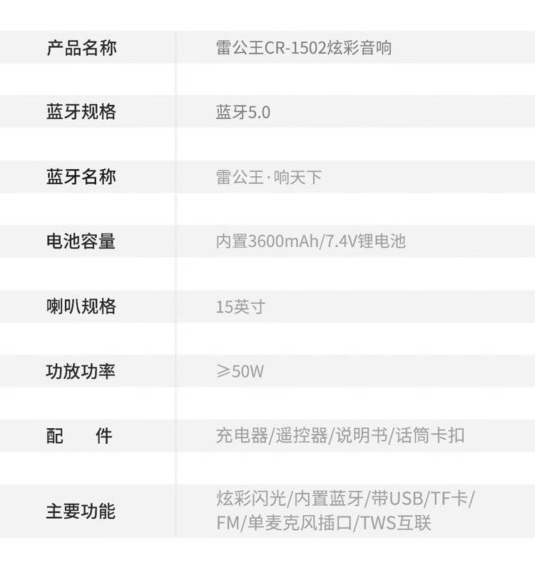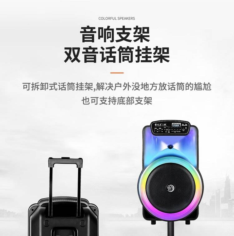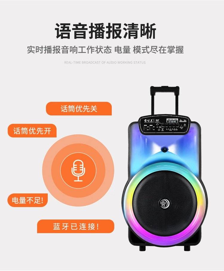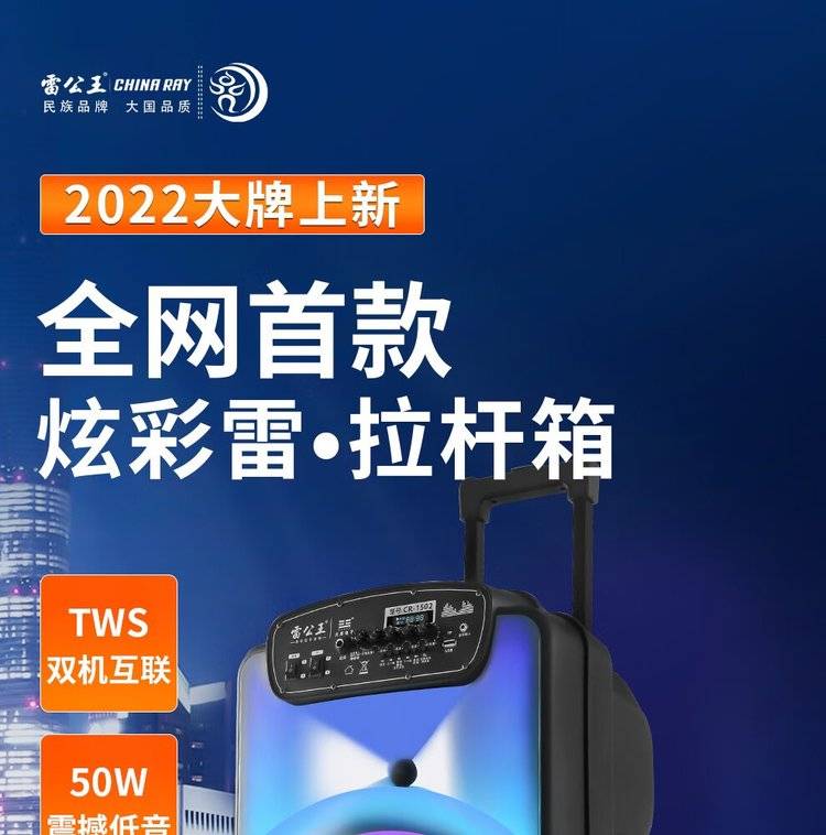 雷公王CR-1502广场舞音响移动拉杆音箱RGB音箱无线话筒户外扩音器