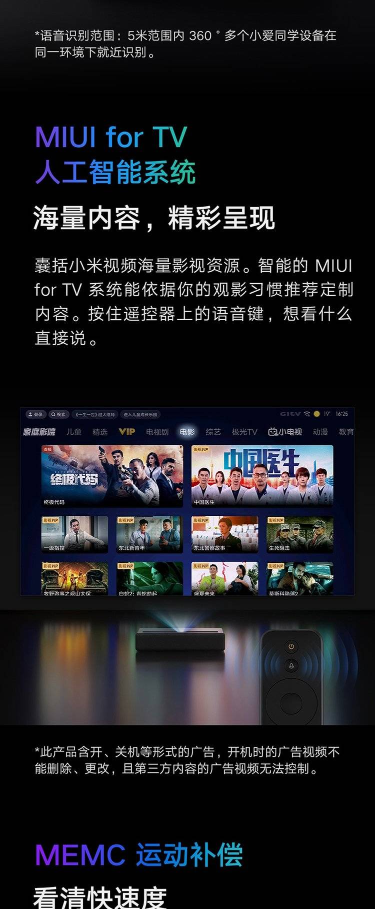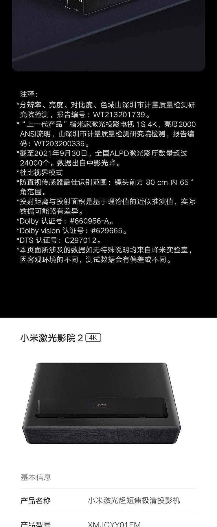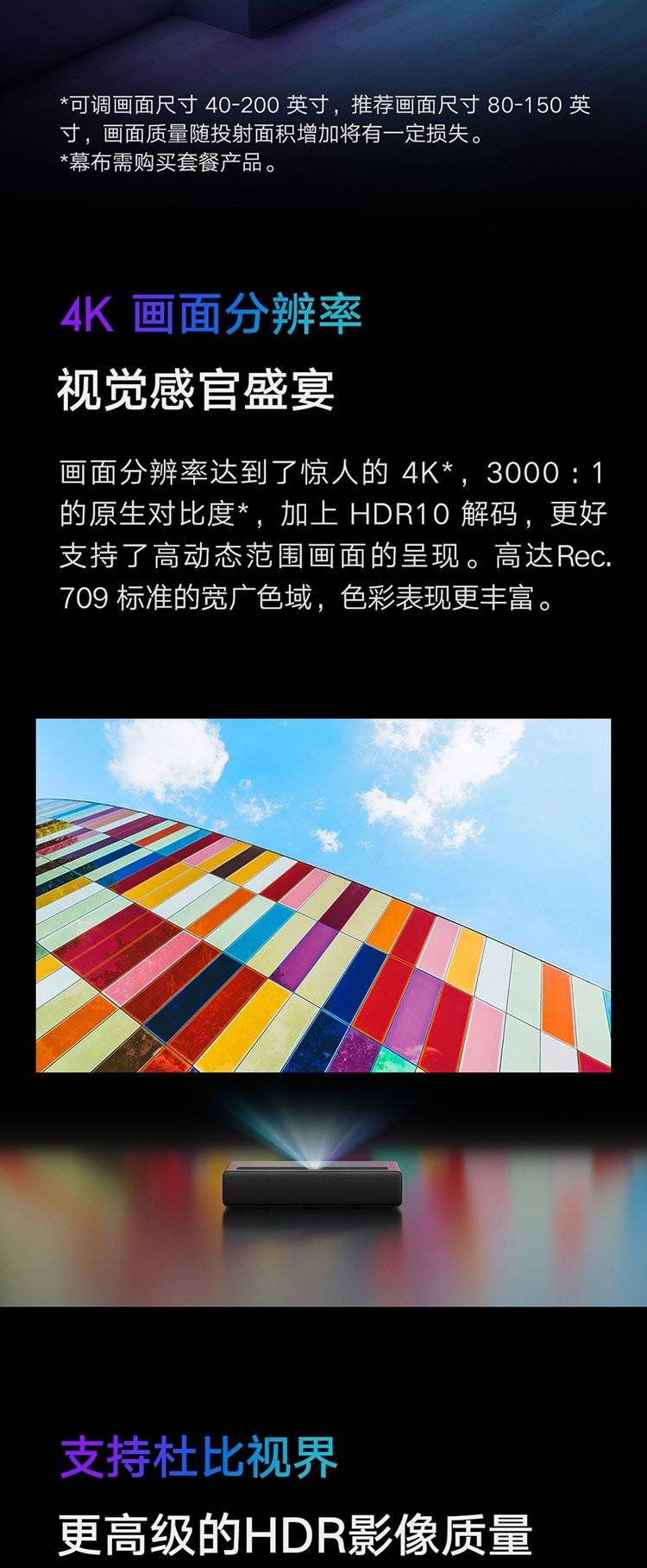 激光影院2超清4K家用短焦电视客厅智能投影机杜比全景声
