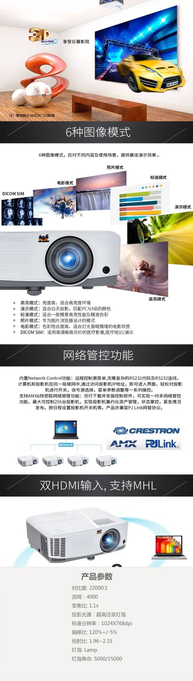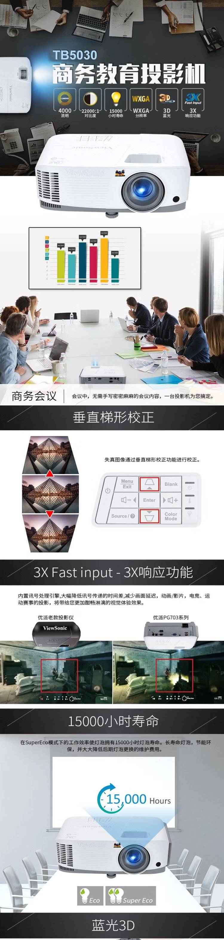 优派 TB5030 投影机 办公会议室 高清 办公室商务商用教学桌面投影 4000流明 标配