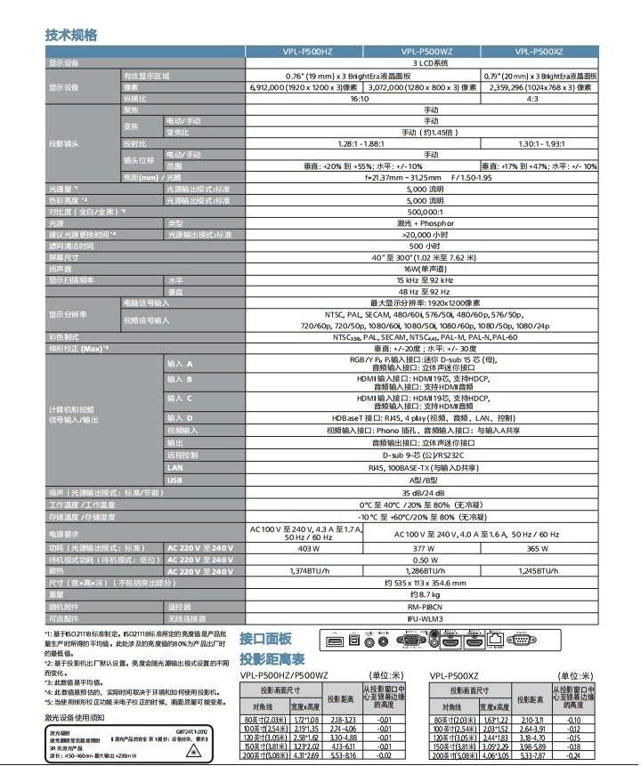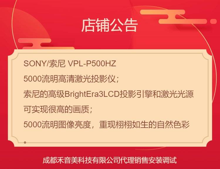 SONY/索尼 激光全高清投影机 销售 会议室办公投影仪 分辨率 1920X1200