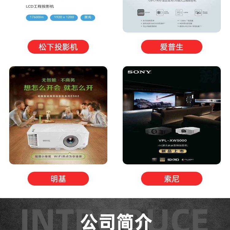 销售,五金交电,投影机,计算机软硬件及辅助设备,配件,耗材,通讯器材,电子产品,电器,办公机具及维护,音响设备,投影机的租赁,园林绿化工程,机电设备安装工程,舞台设备租赁设备