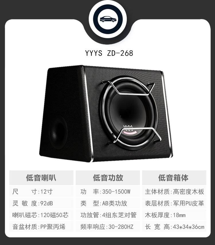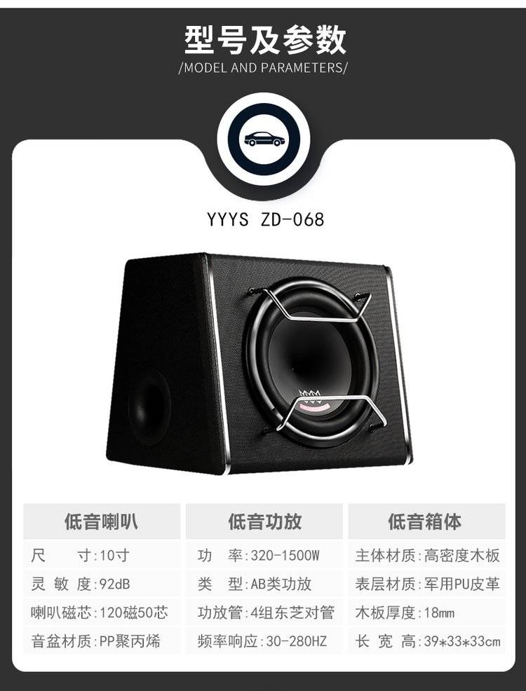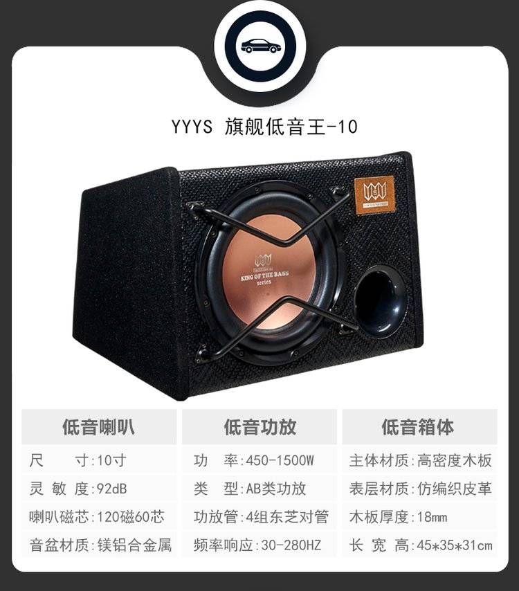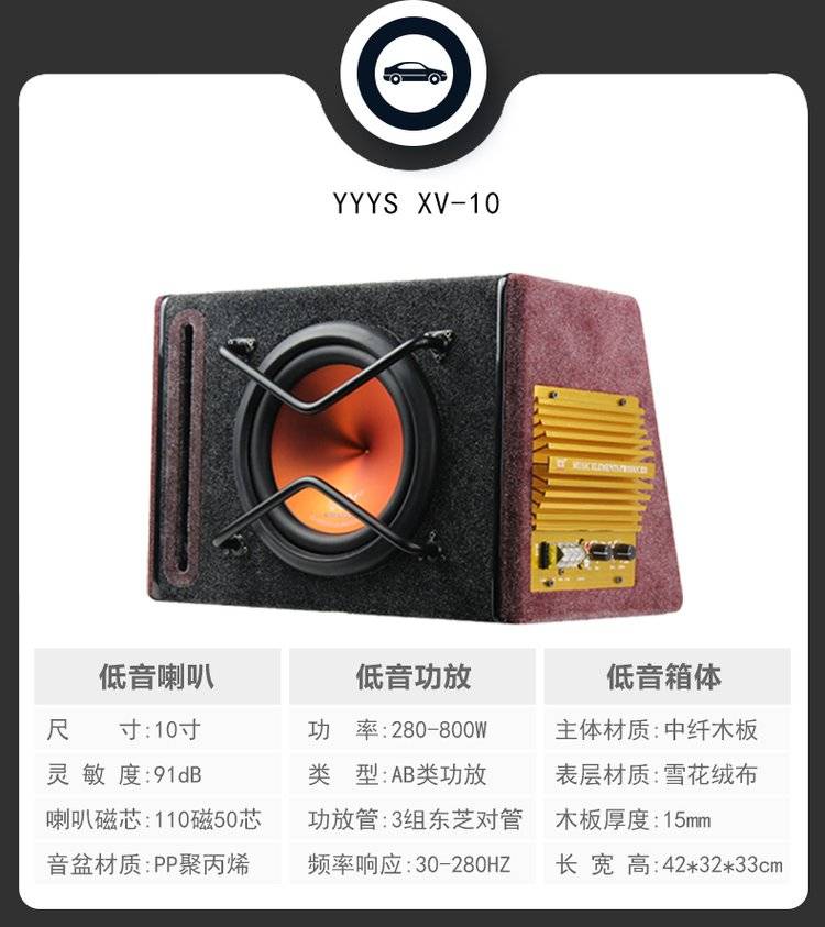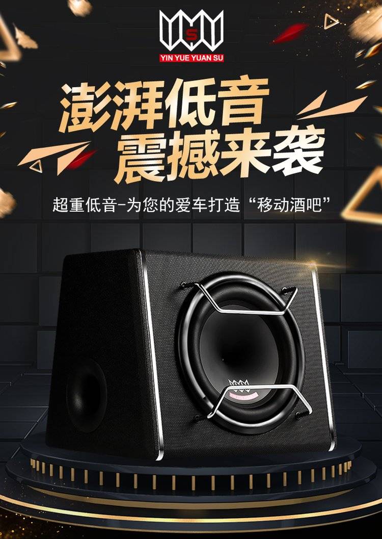 音乐元素汽车低音炮 车载低音炮音响10寸12V有源自带功放超重低音