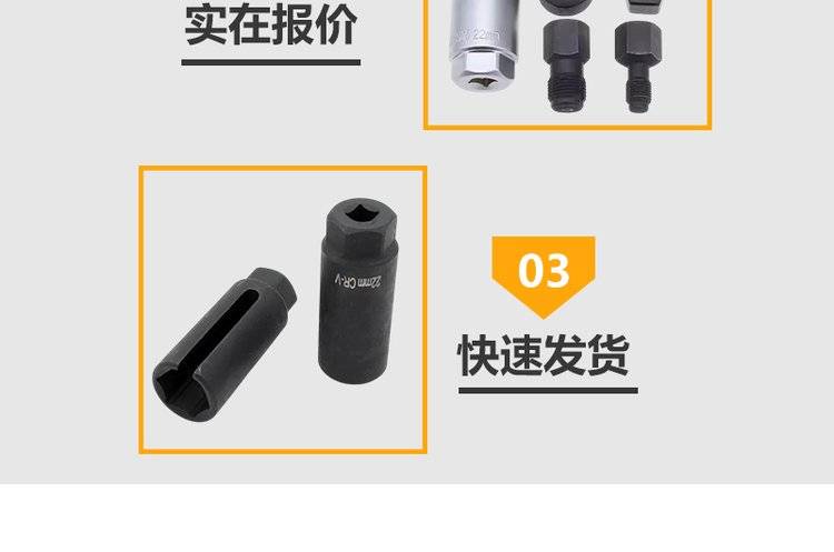 汽车氧传感器套筒拆卸3/8 22mm大小开口氧套筒
