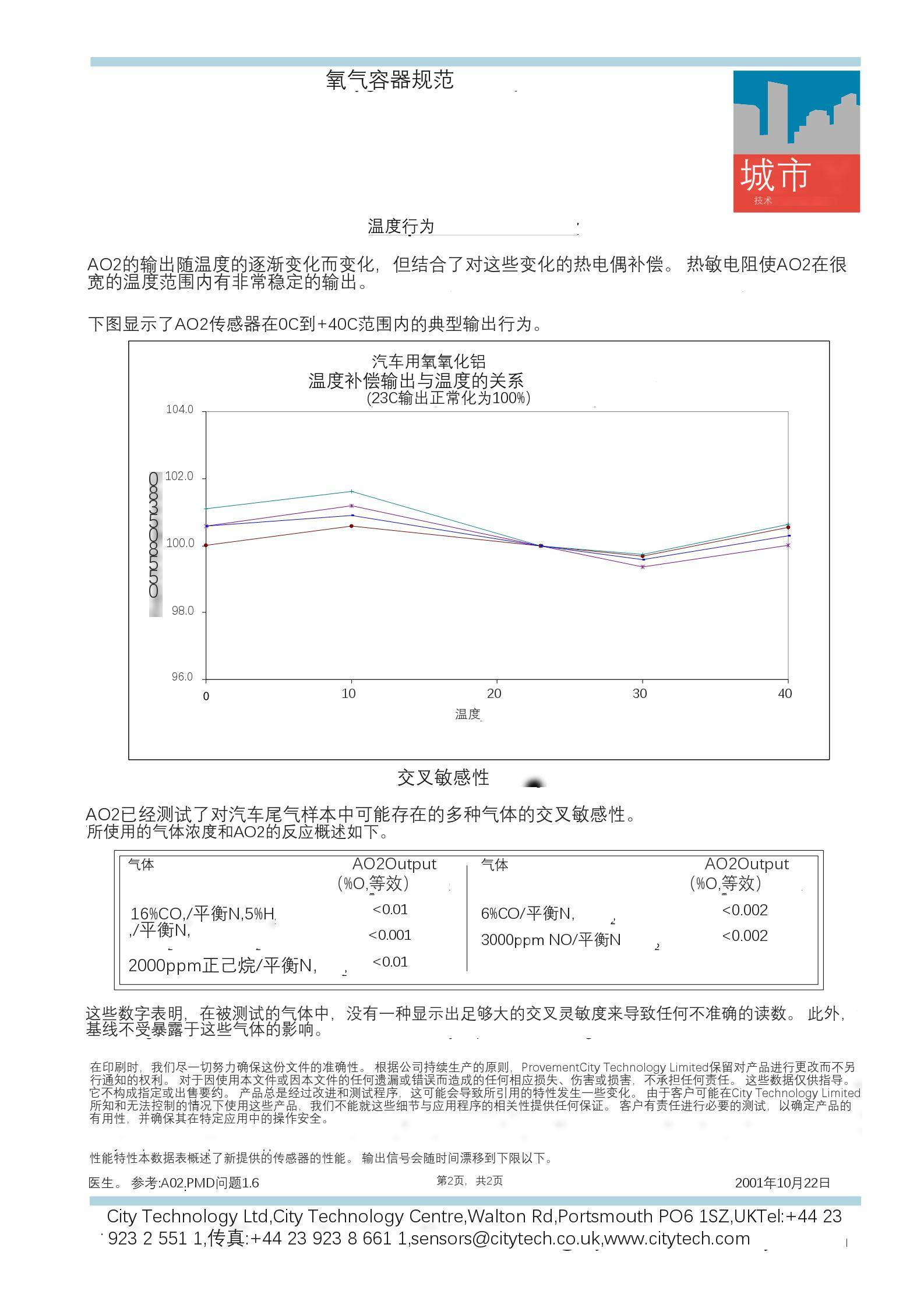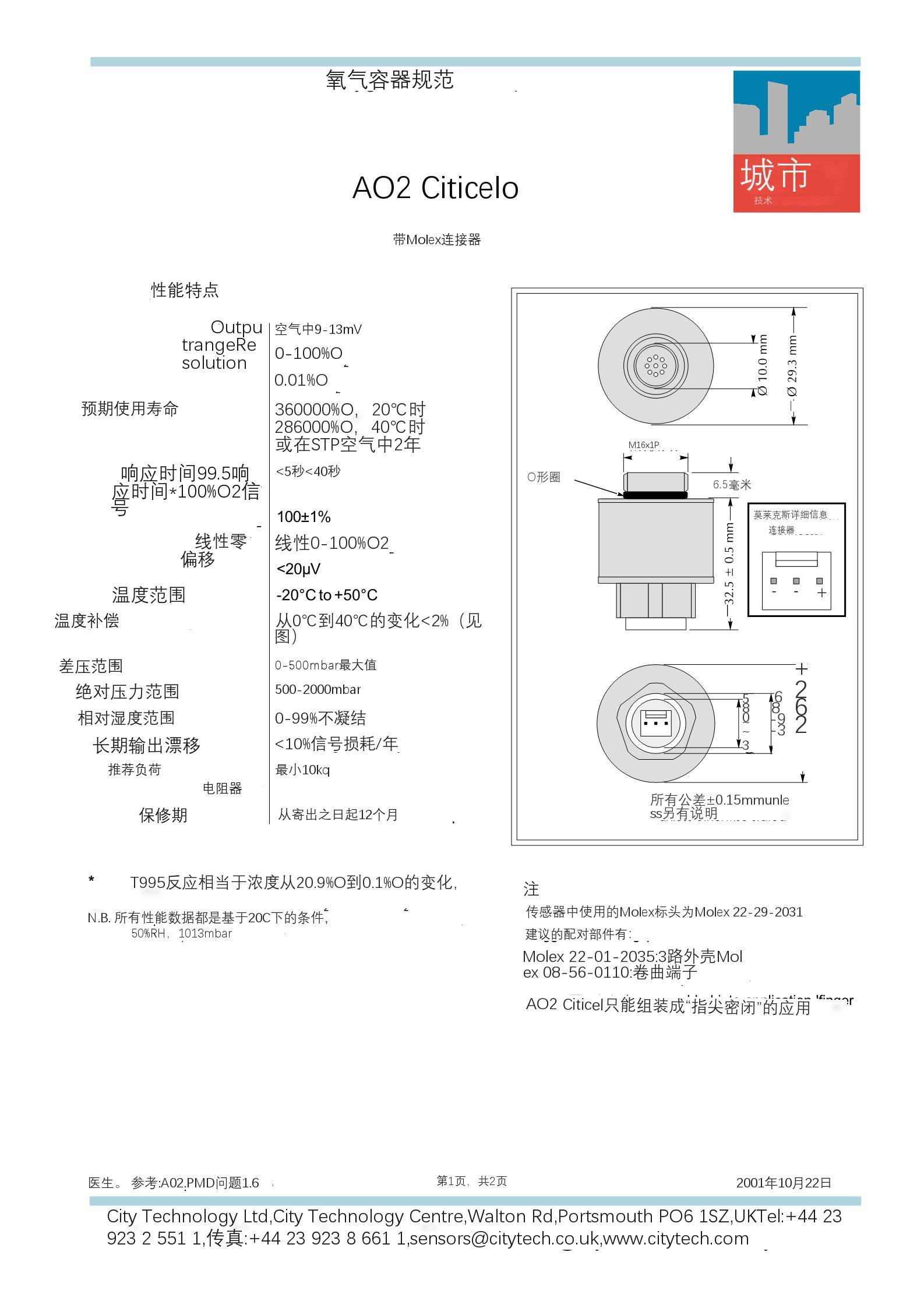 AO2氧传感器用于各种氧测试相关仪器,如汽车尾气测试仪器