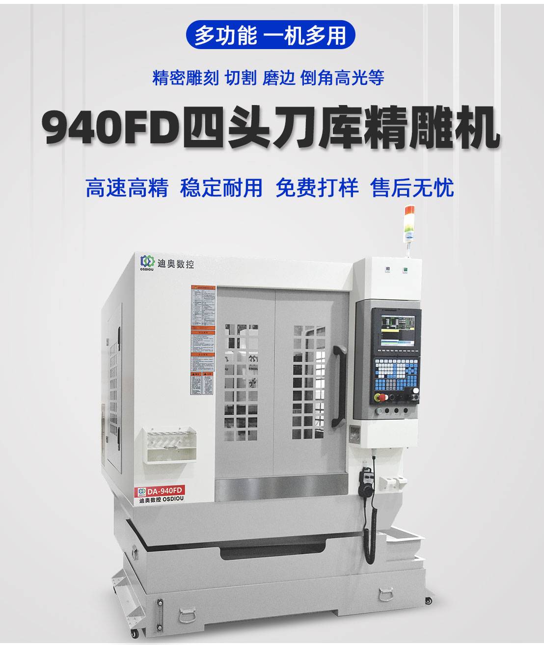 四头刀库精雕机940FD手机配件小五金pc亚克力PET视窗镜片批量加工