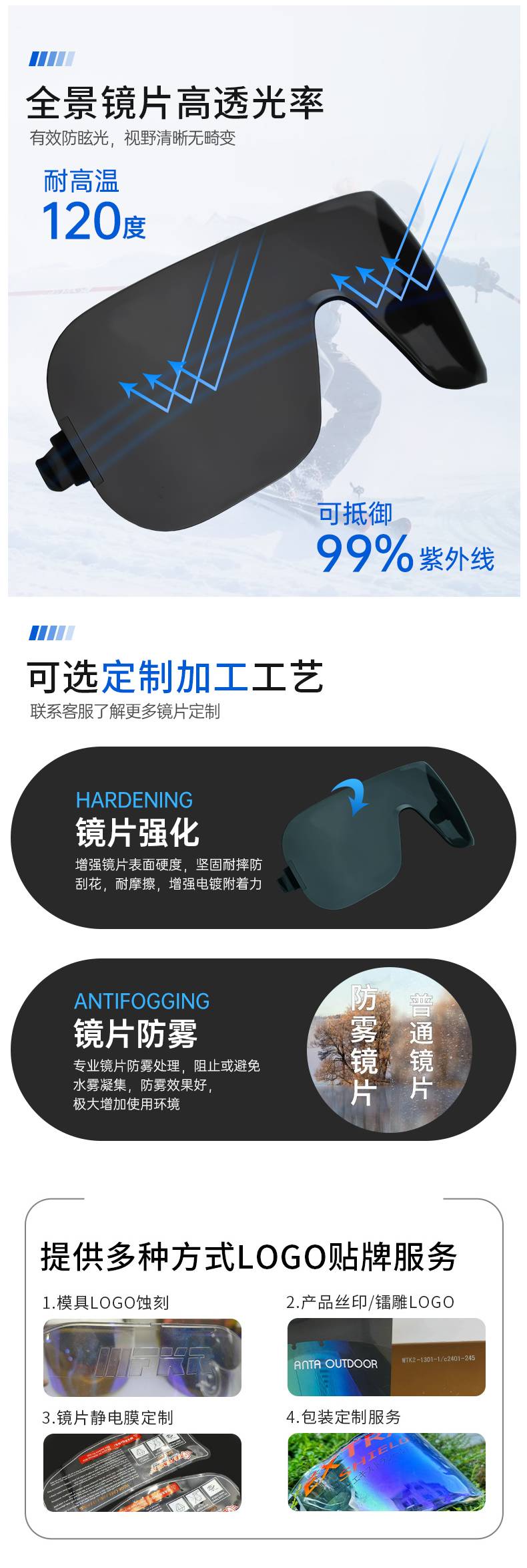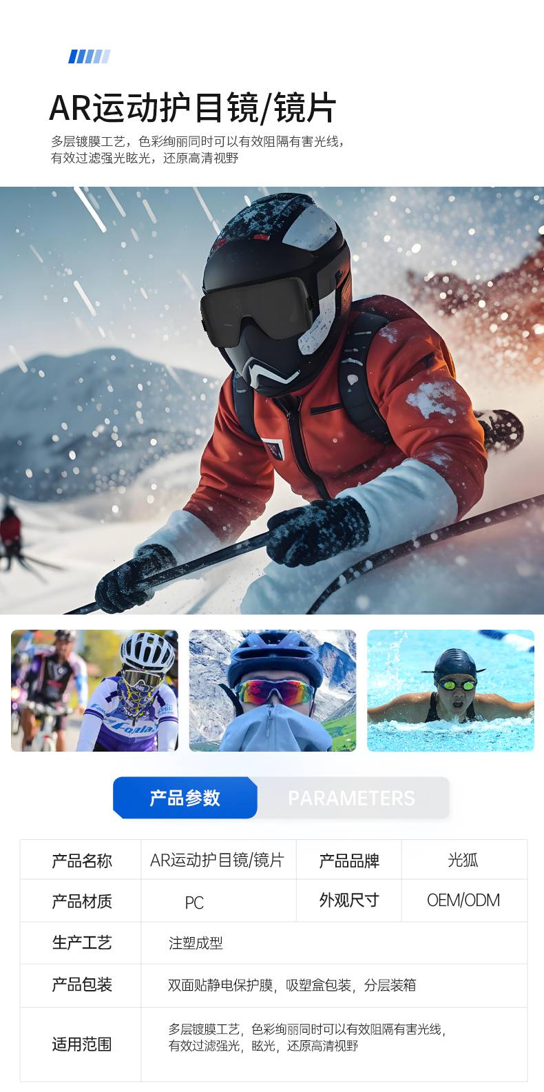 展拓光学 智能穿戴AR运动护目镜片 增透镀膜防雾防眩光眼镜配件