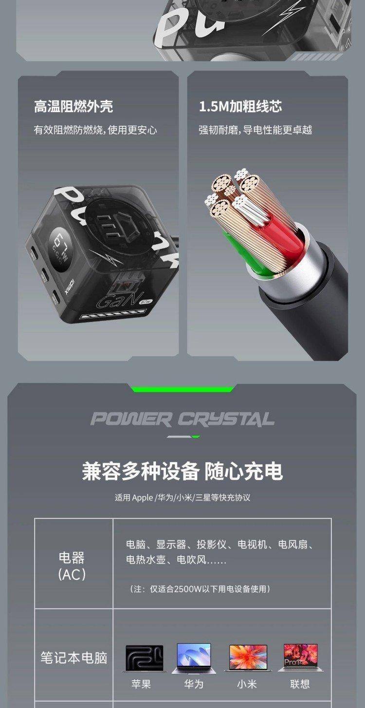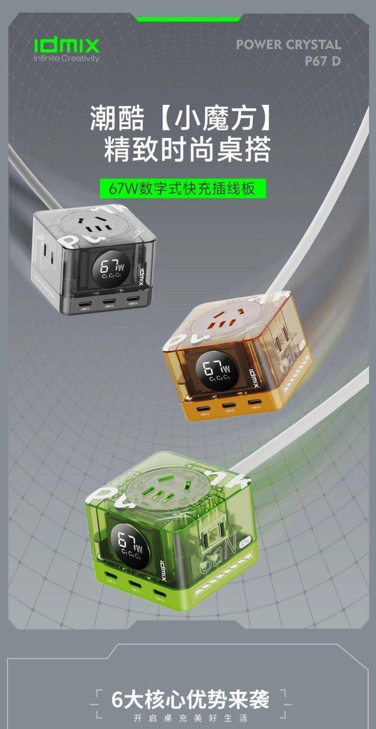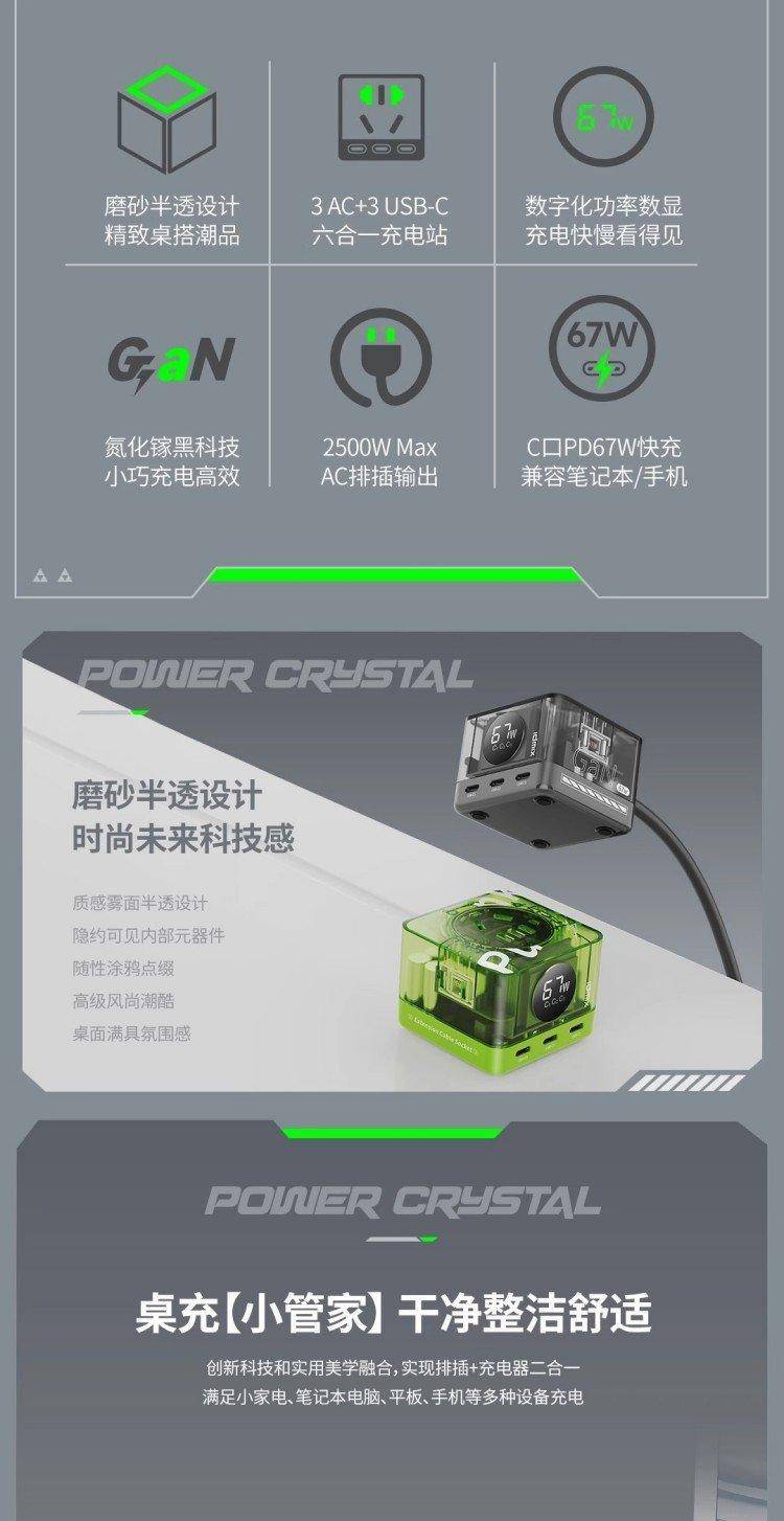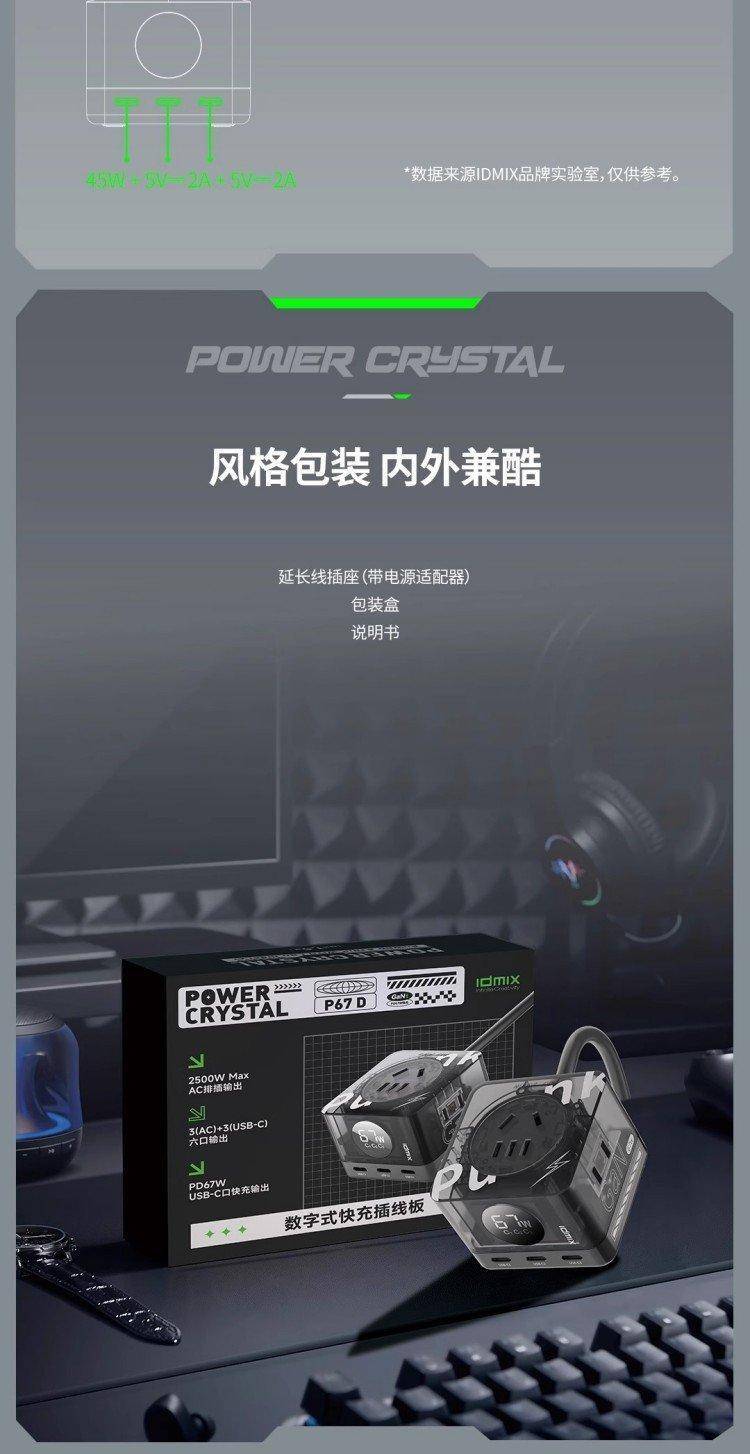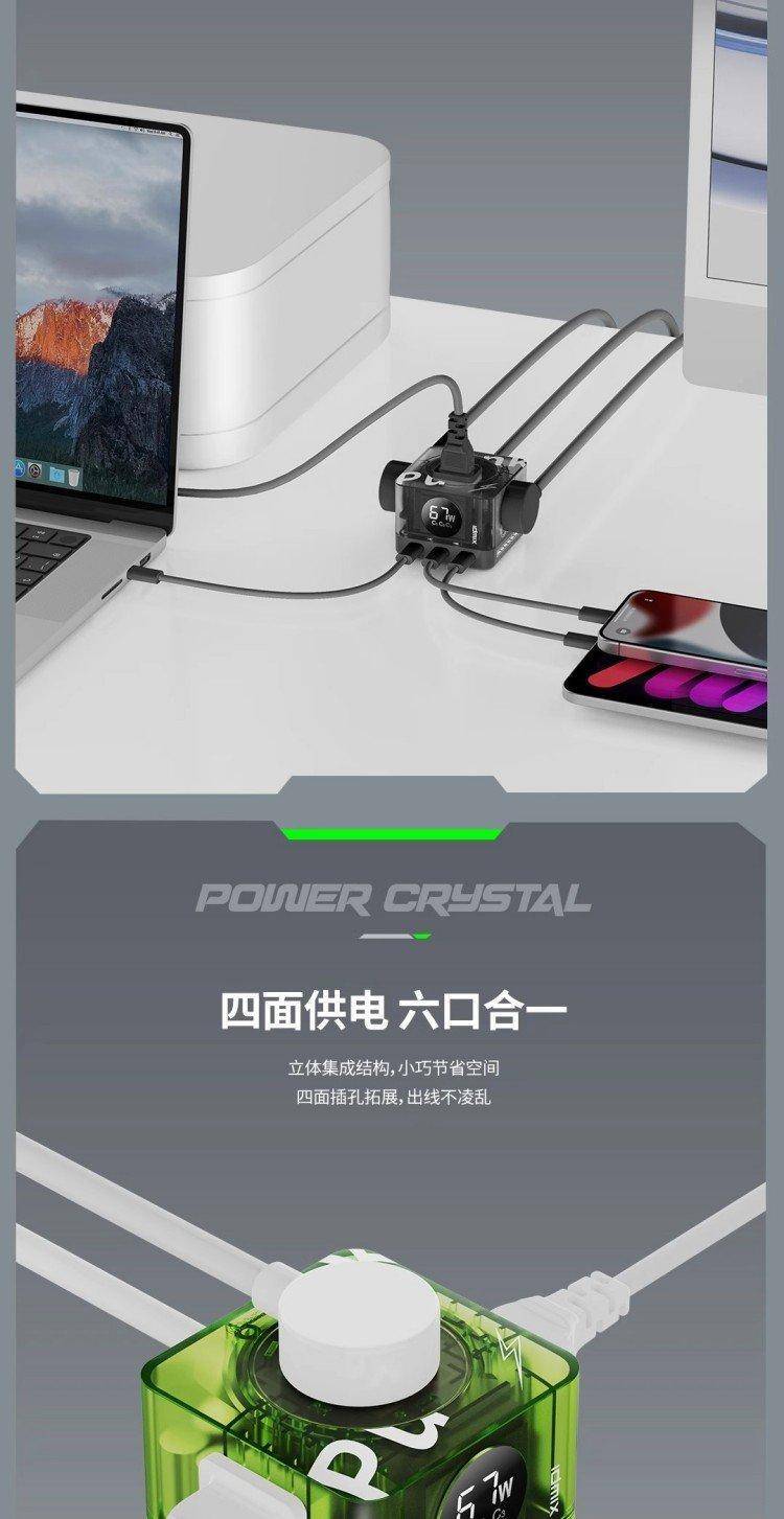 数字式快充插线板 六口输出 USB-C PD67W 2500W 排插