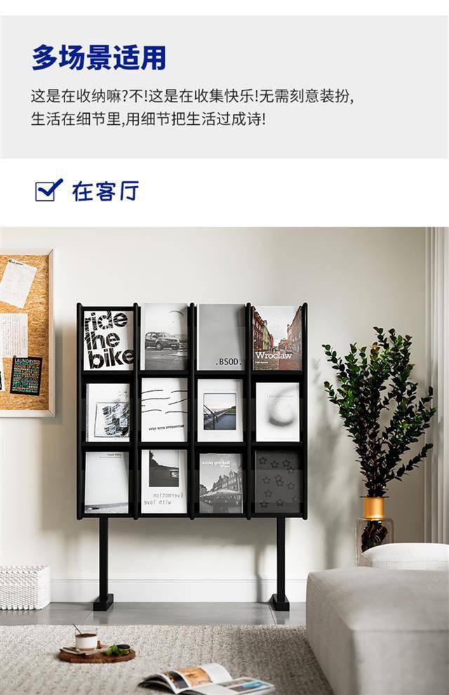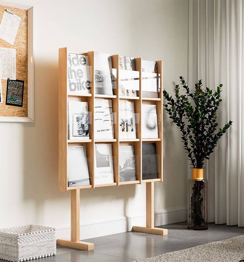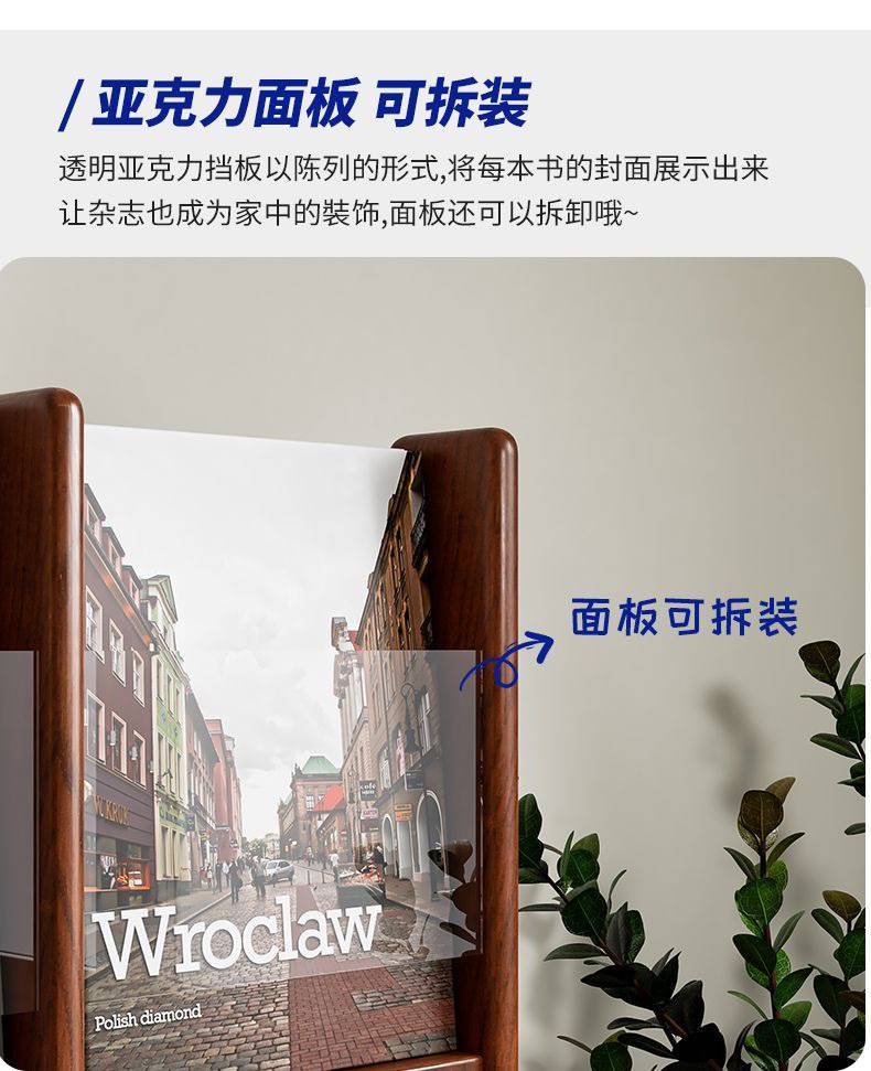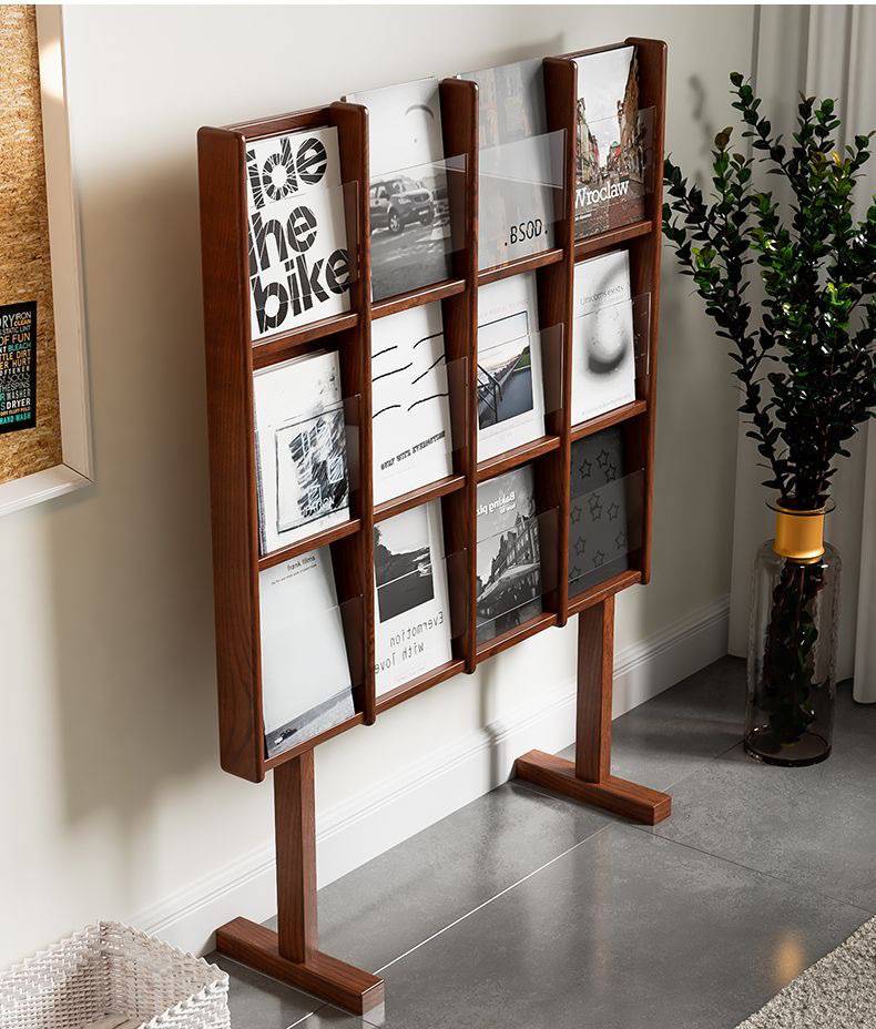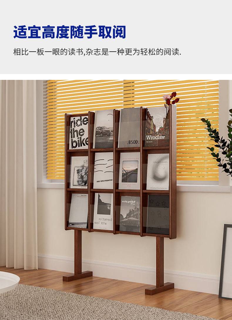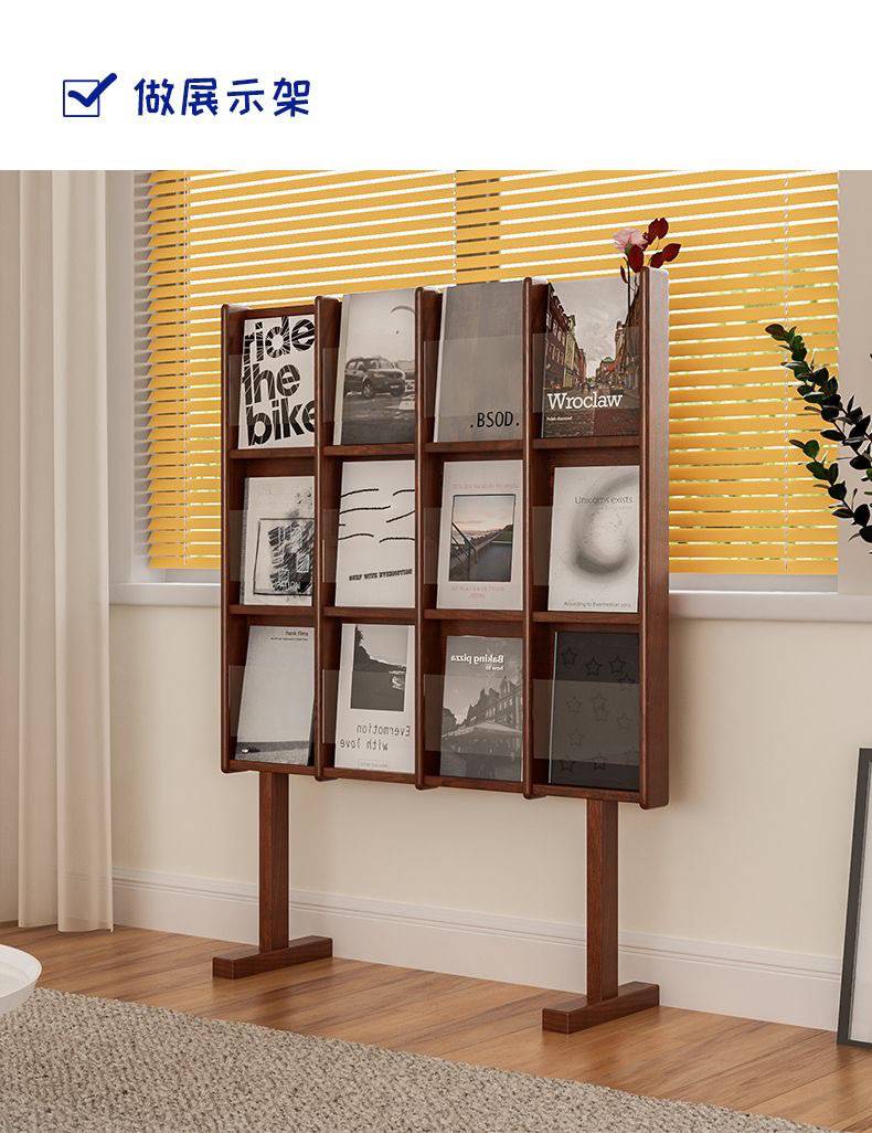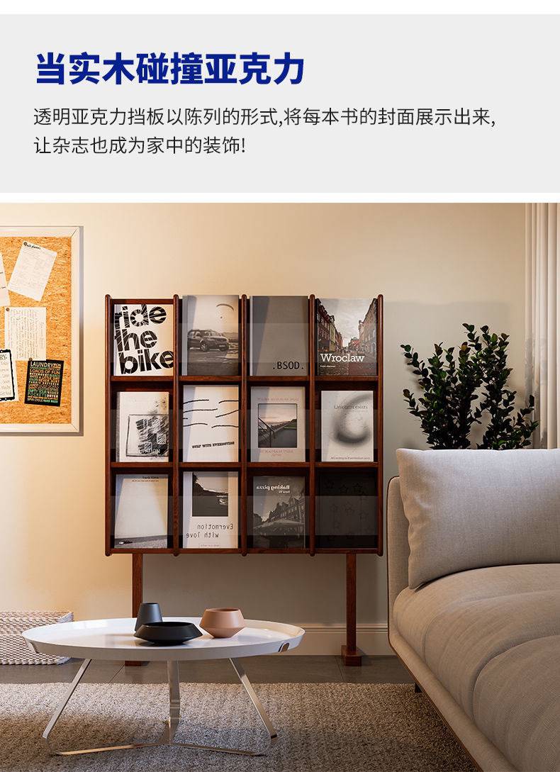 杂志架中古实木阅读书架日式展示架创意亚克力落地报刊cd架子