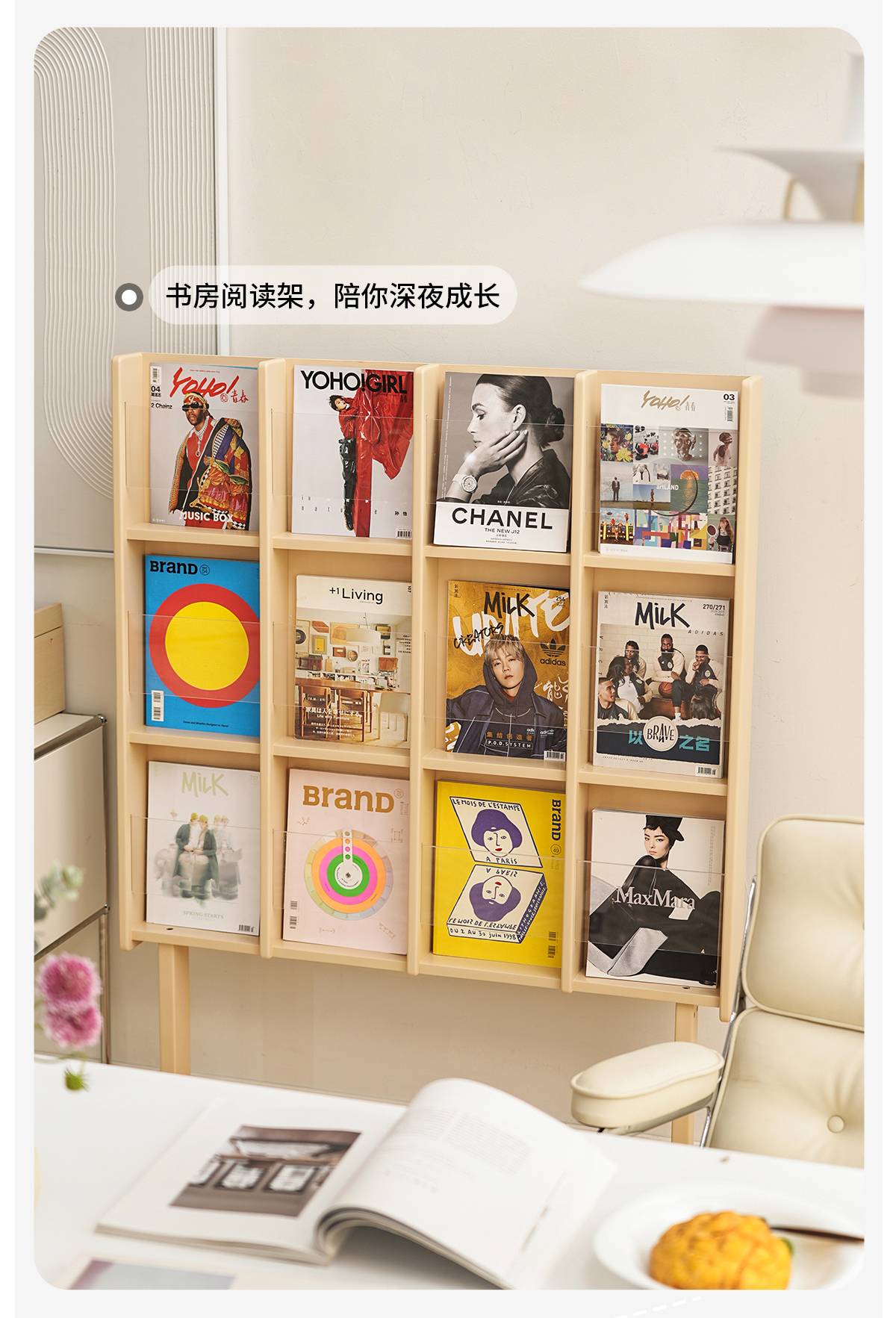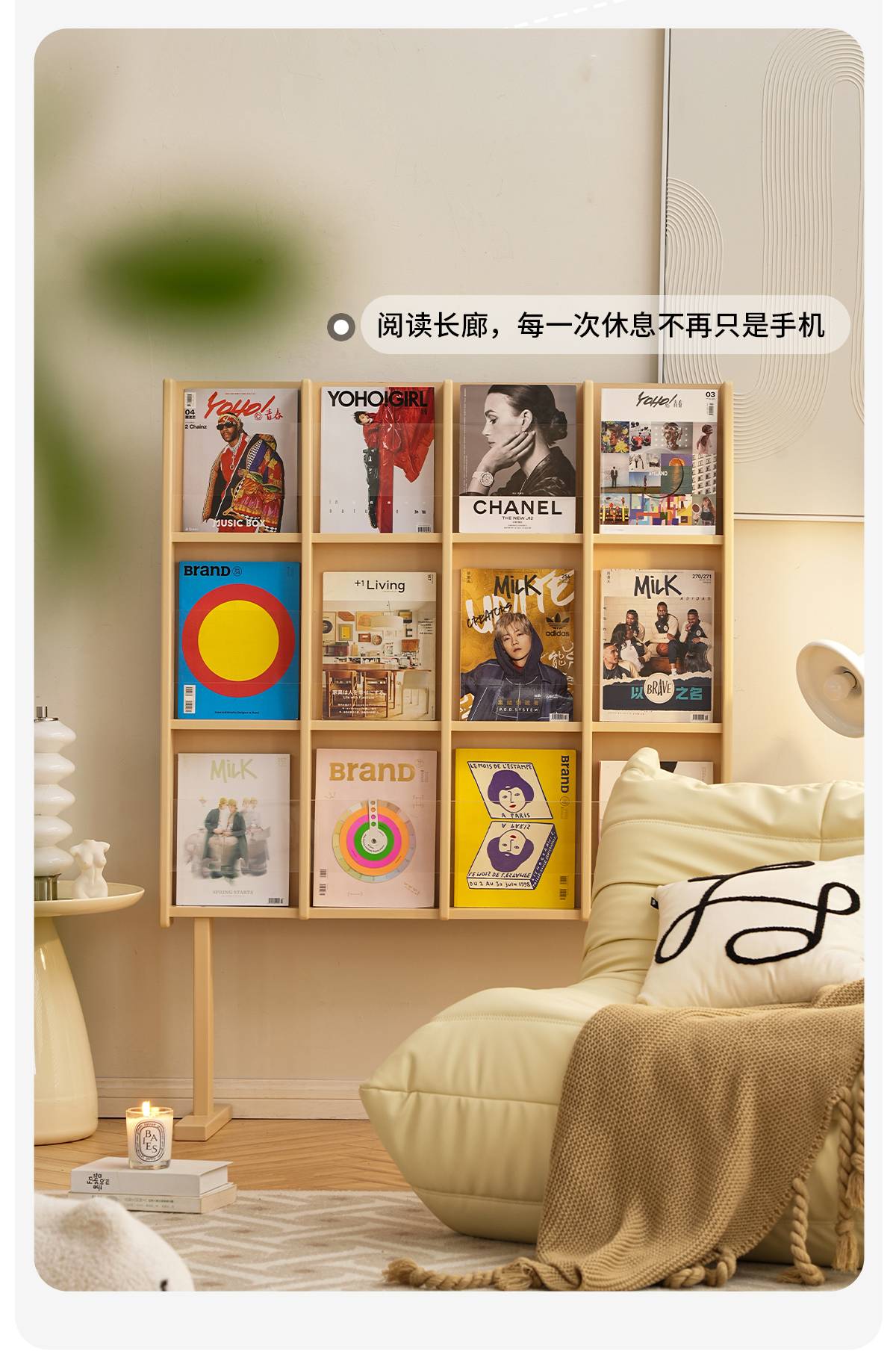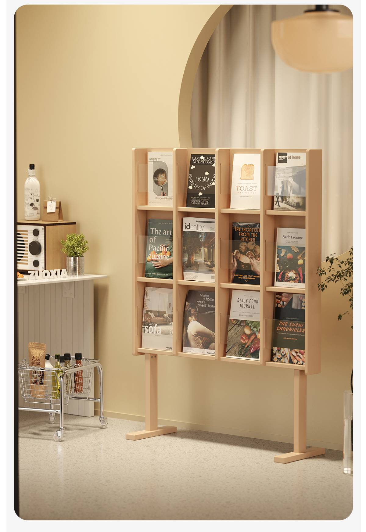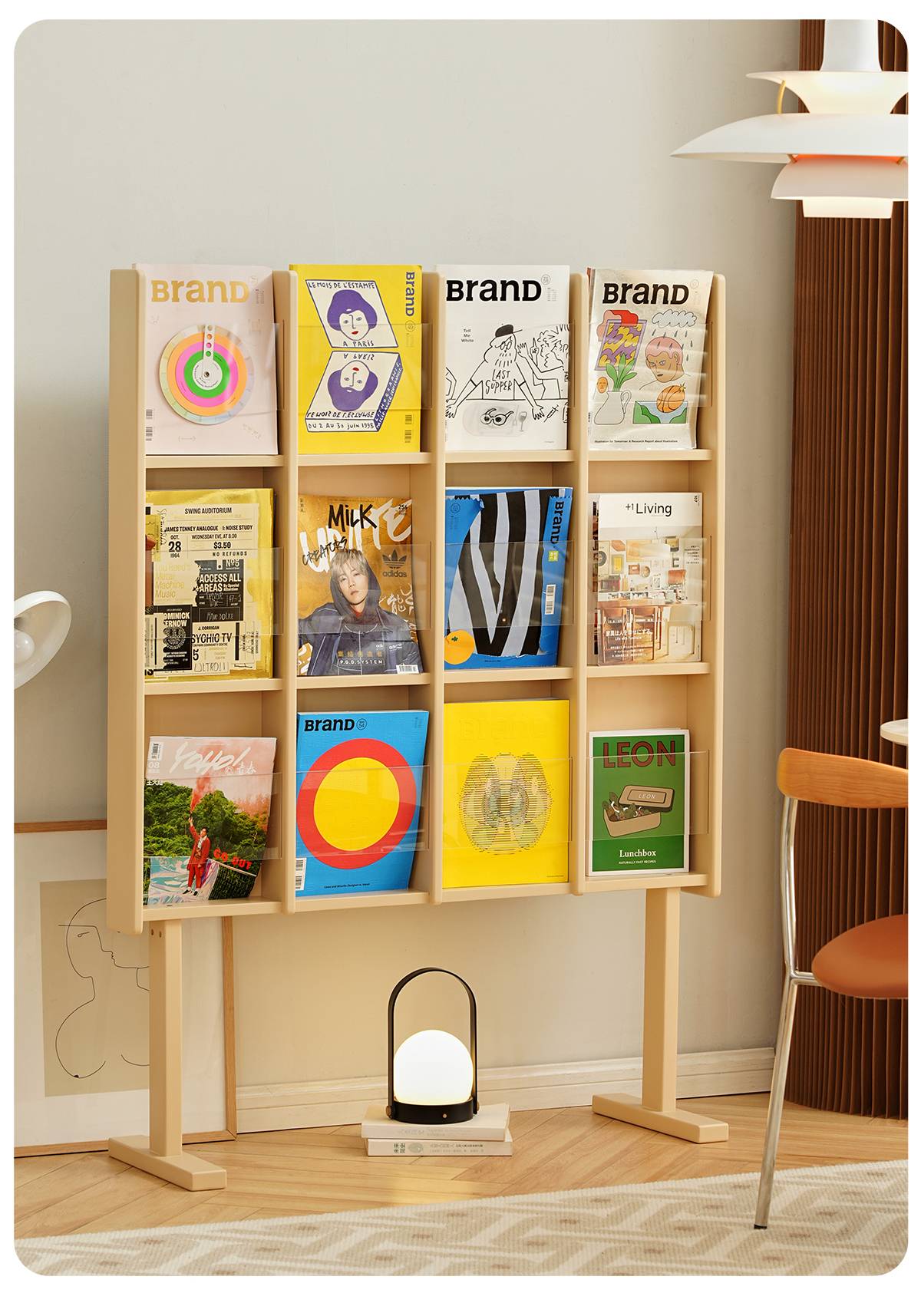 左下客厅格林书架落地中古实木阅读展示架日式报刊收纳架cd架