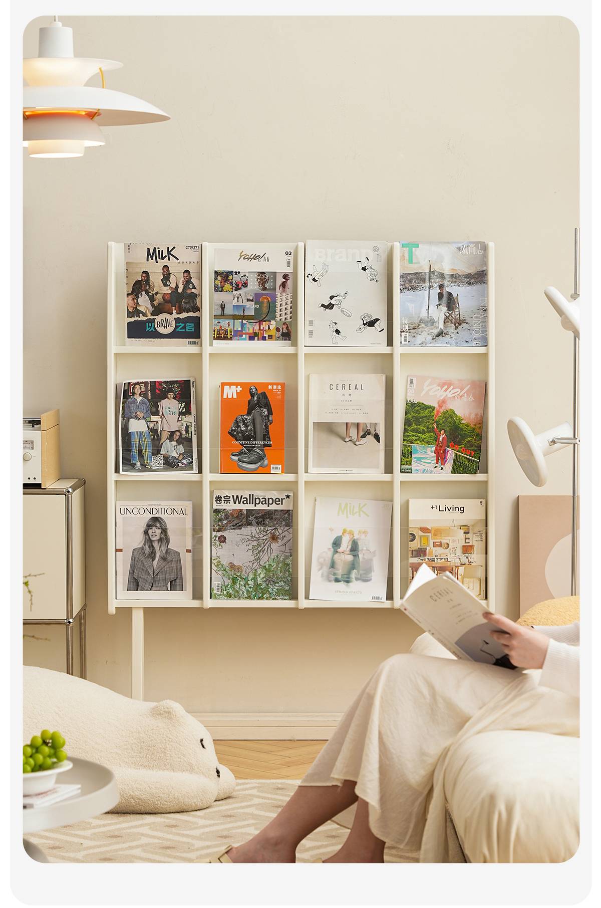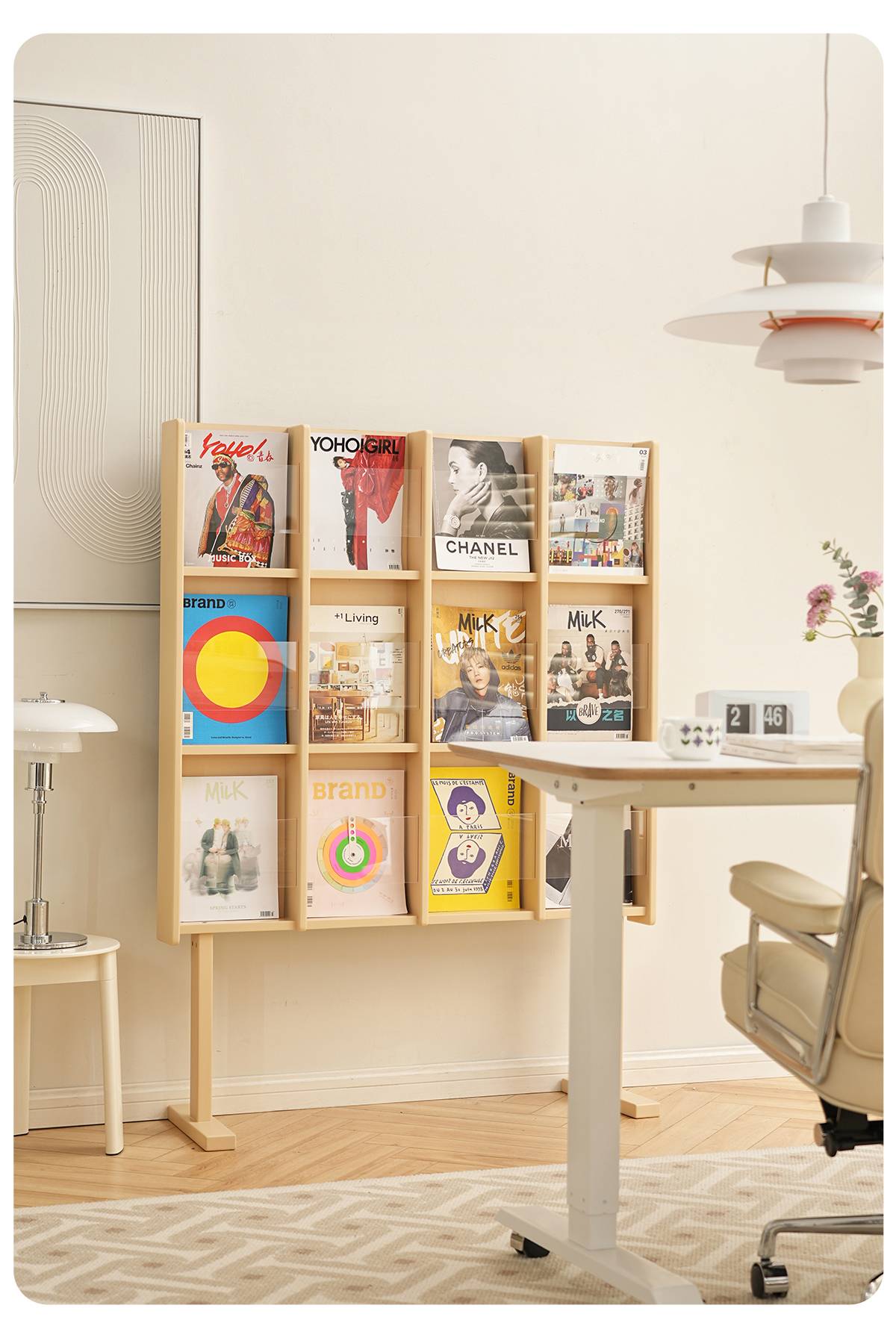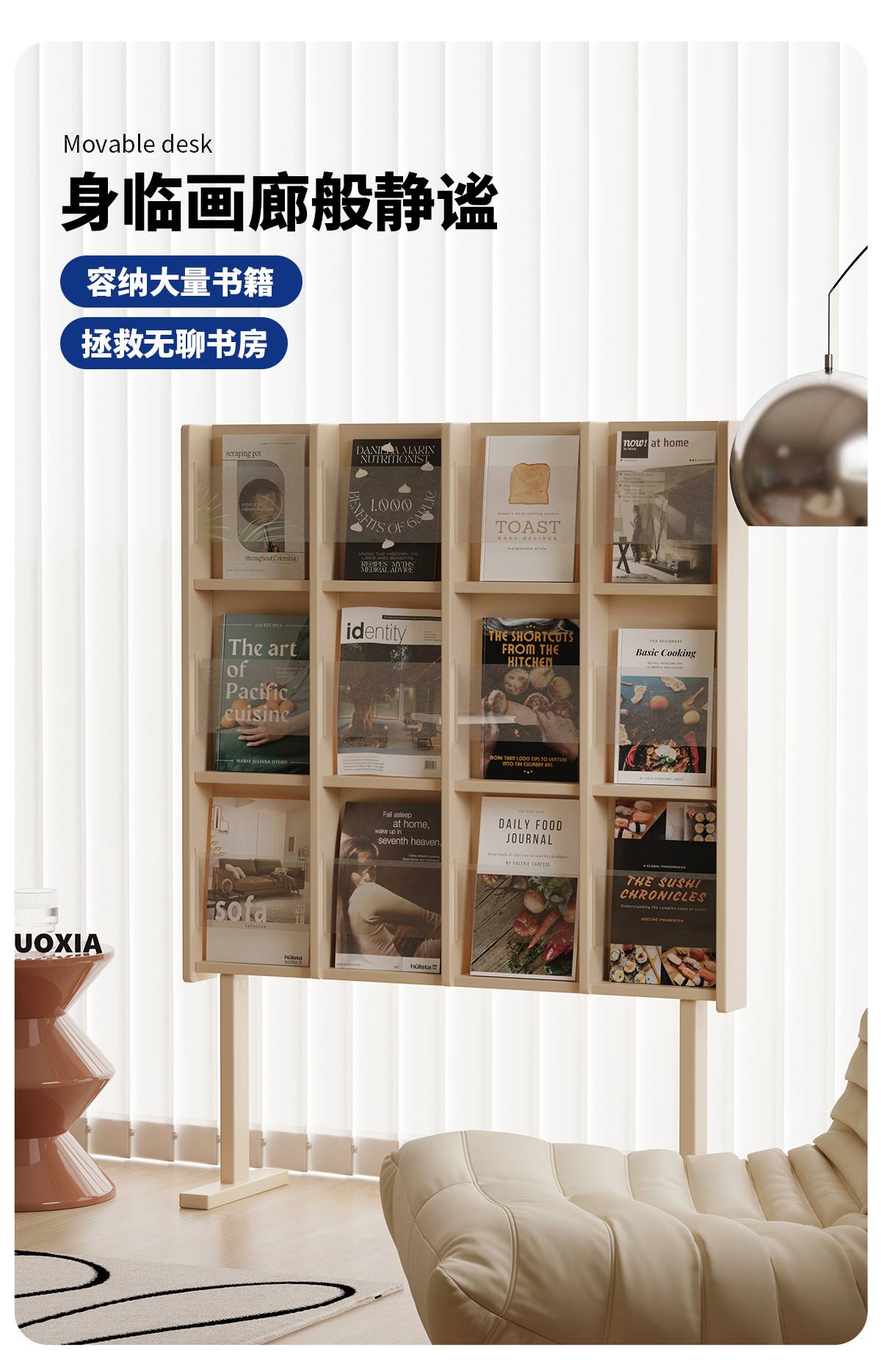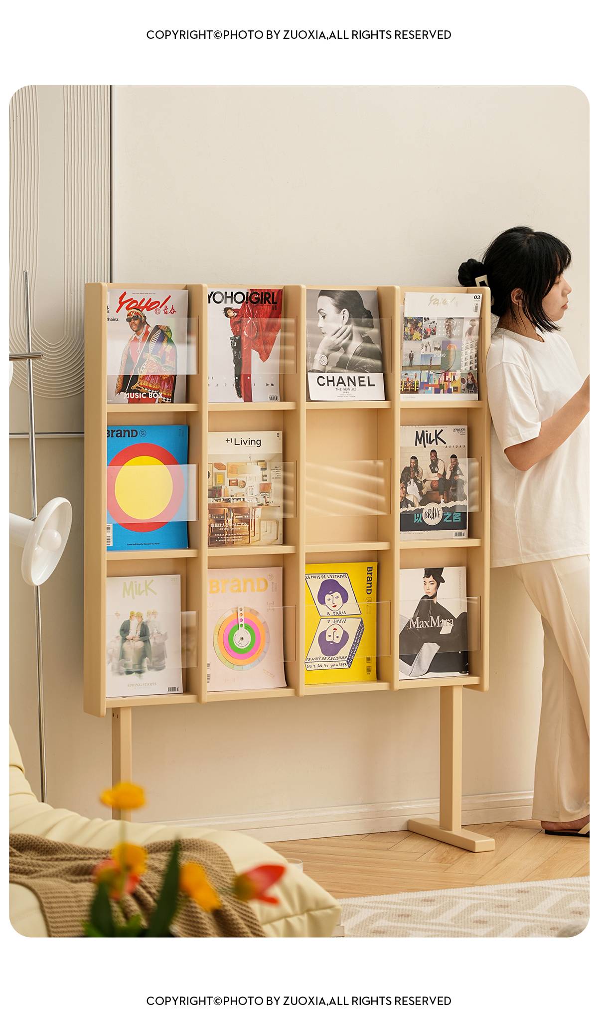 左下客厅格林书架落地中古实木阅读展示架日式报刊收纳架cd架
