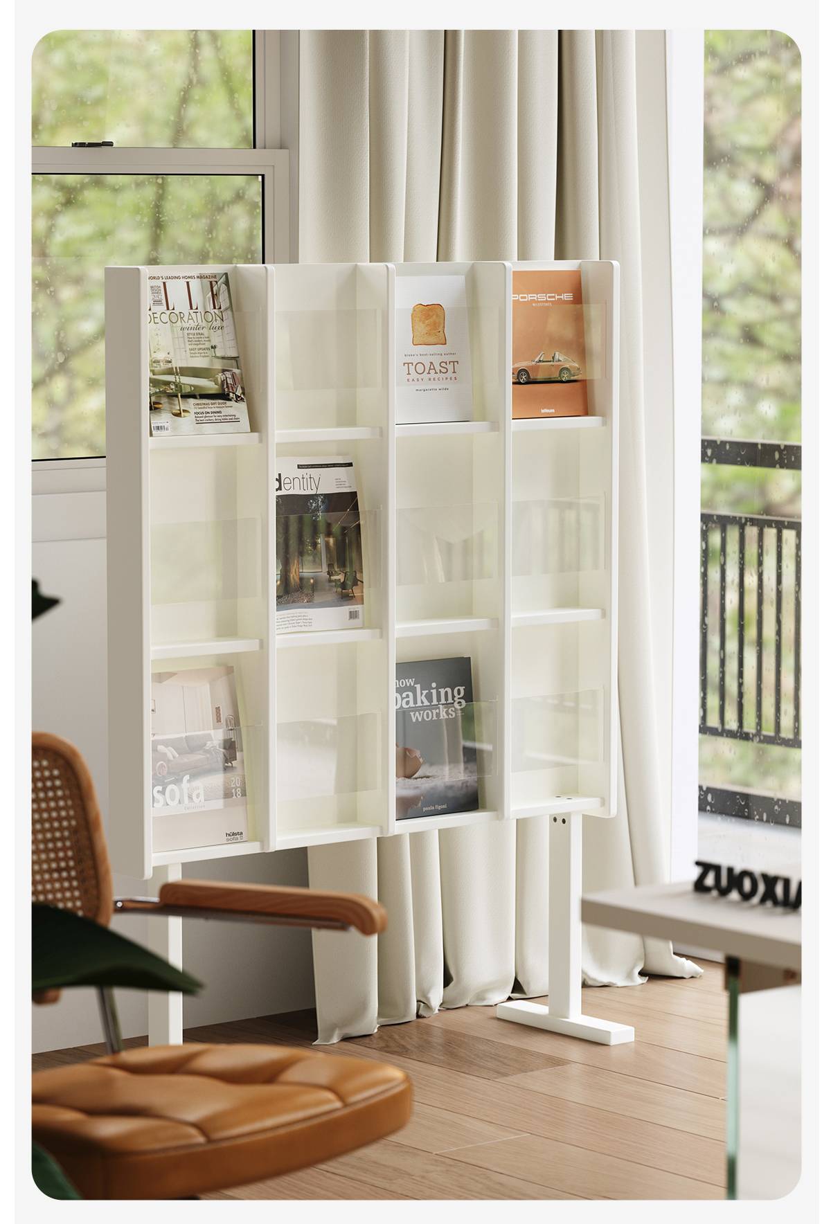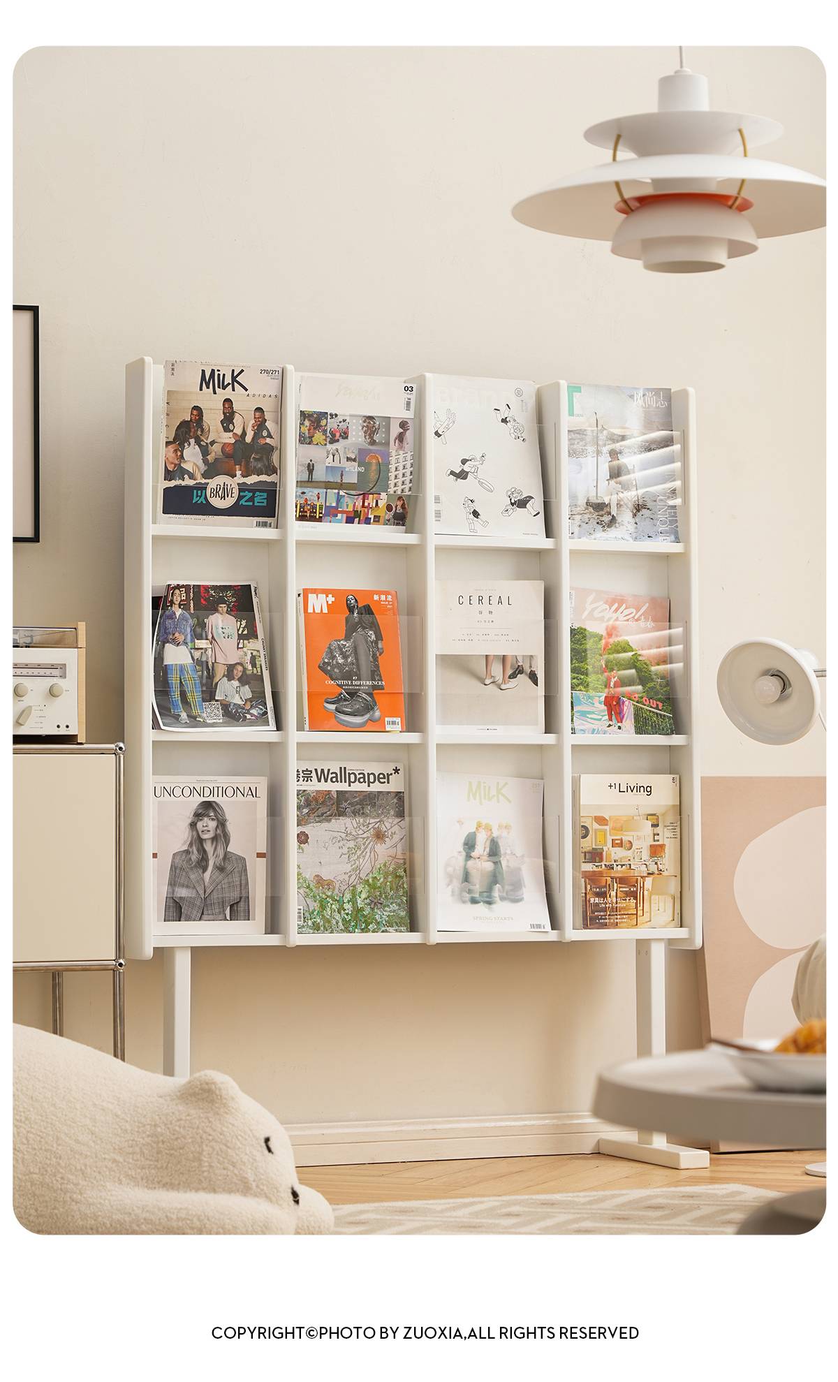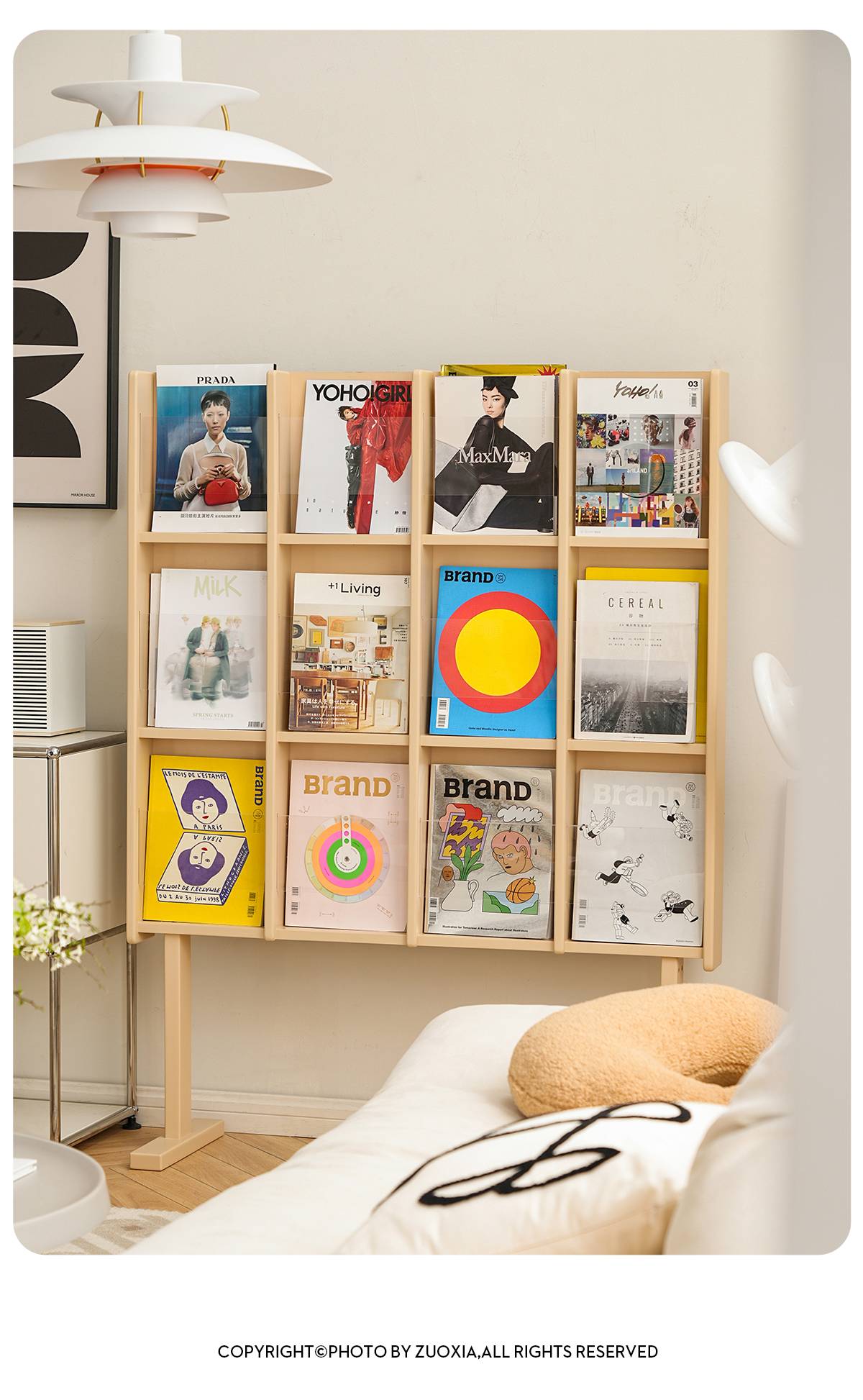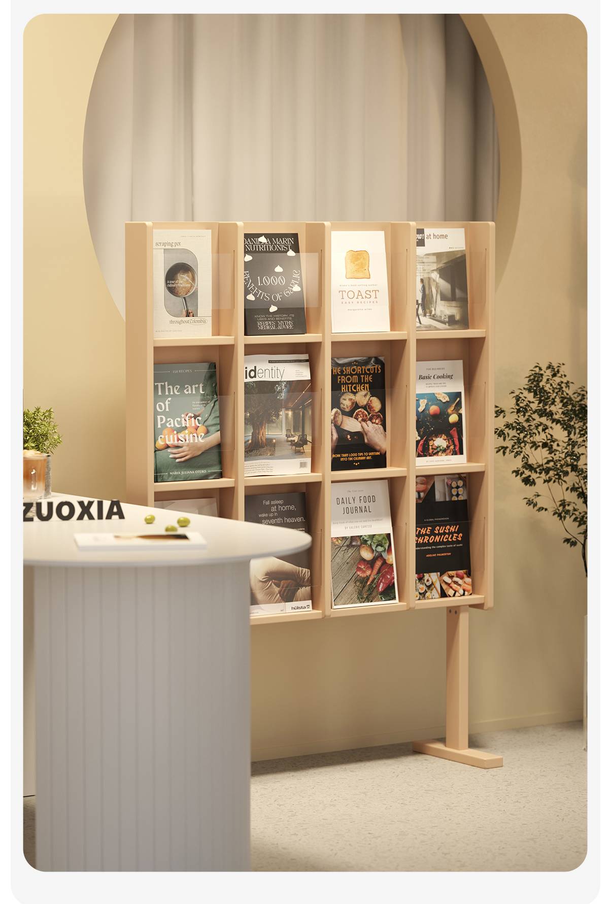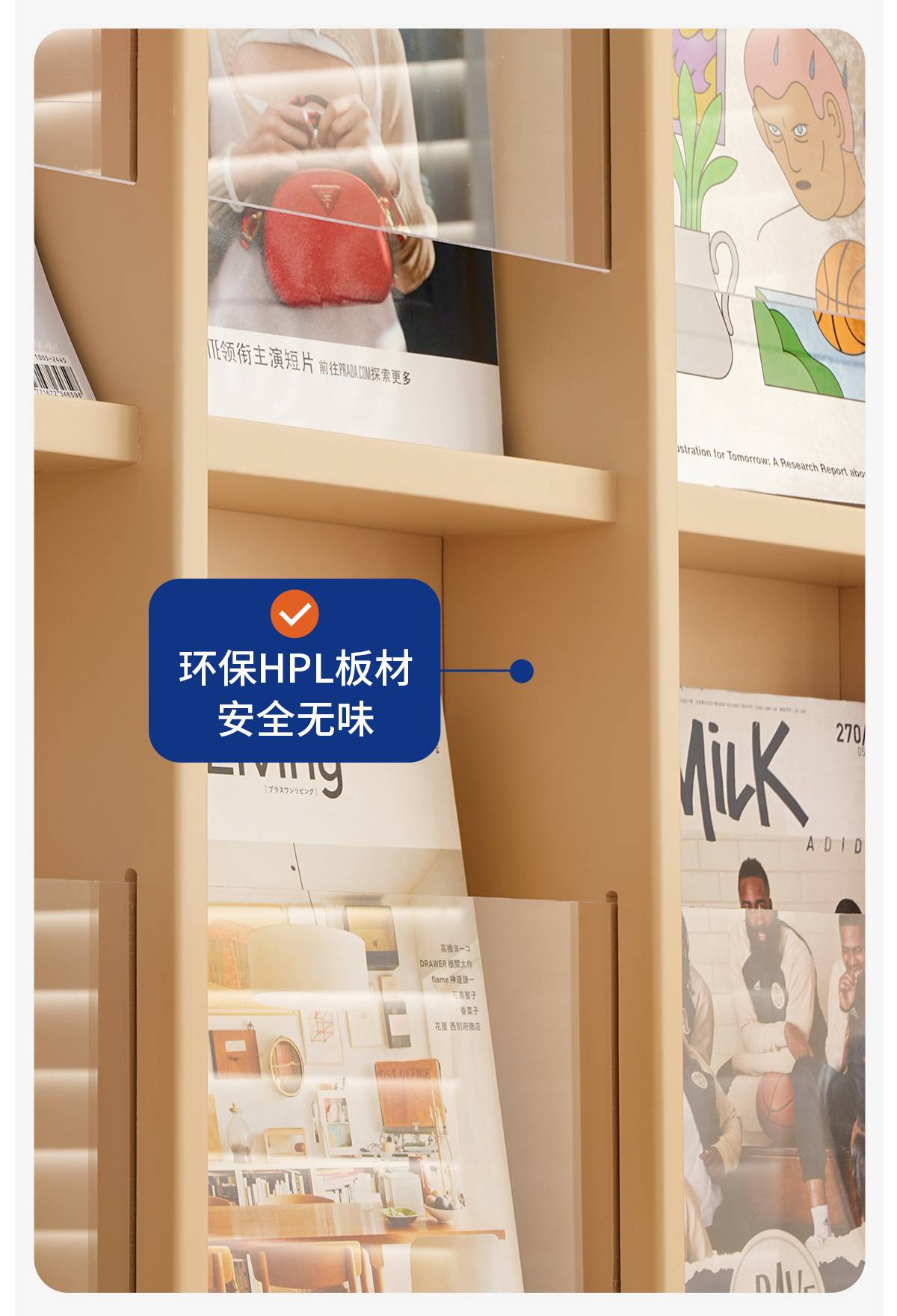 左下客厅格林书架落地中古实木阅读展示架日式报刊收纳架cd架