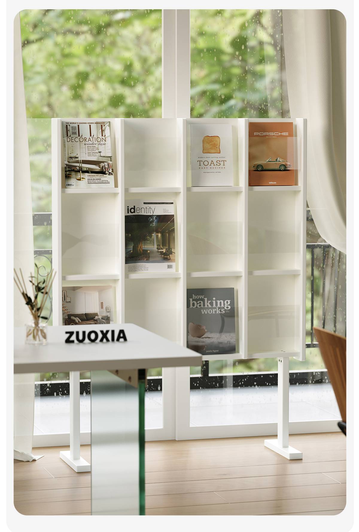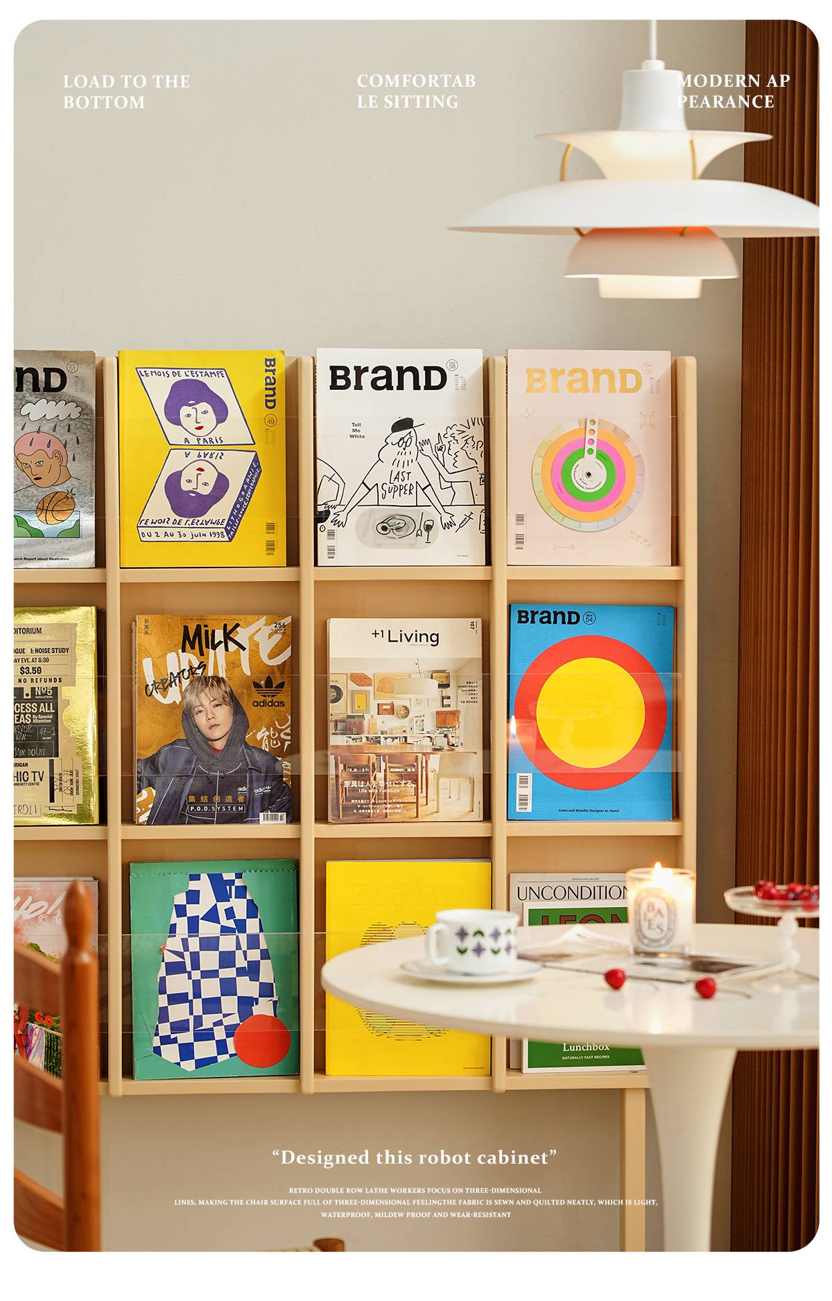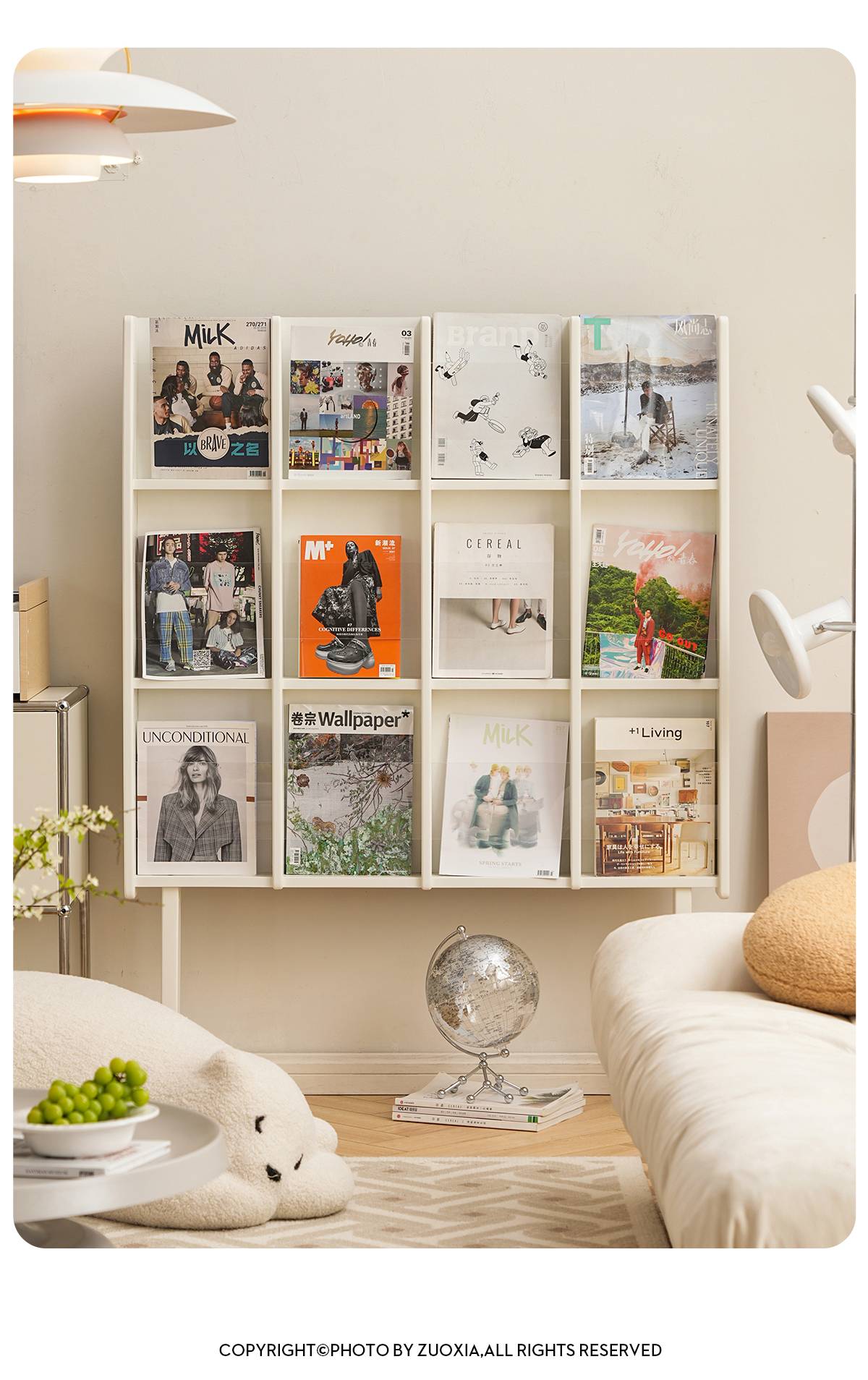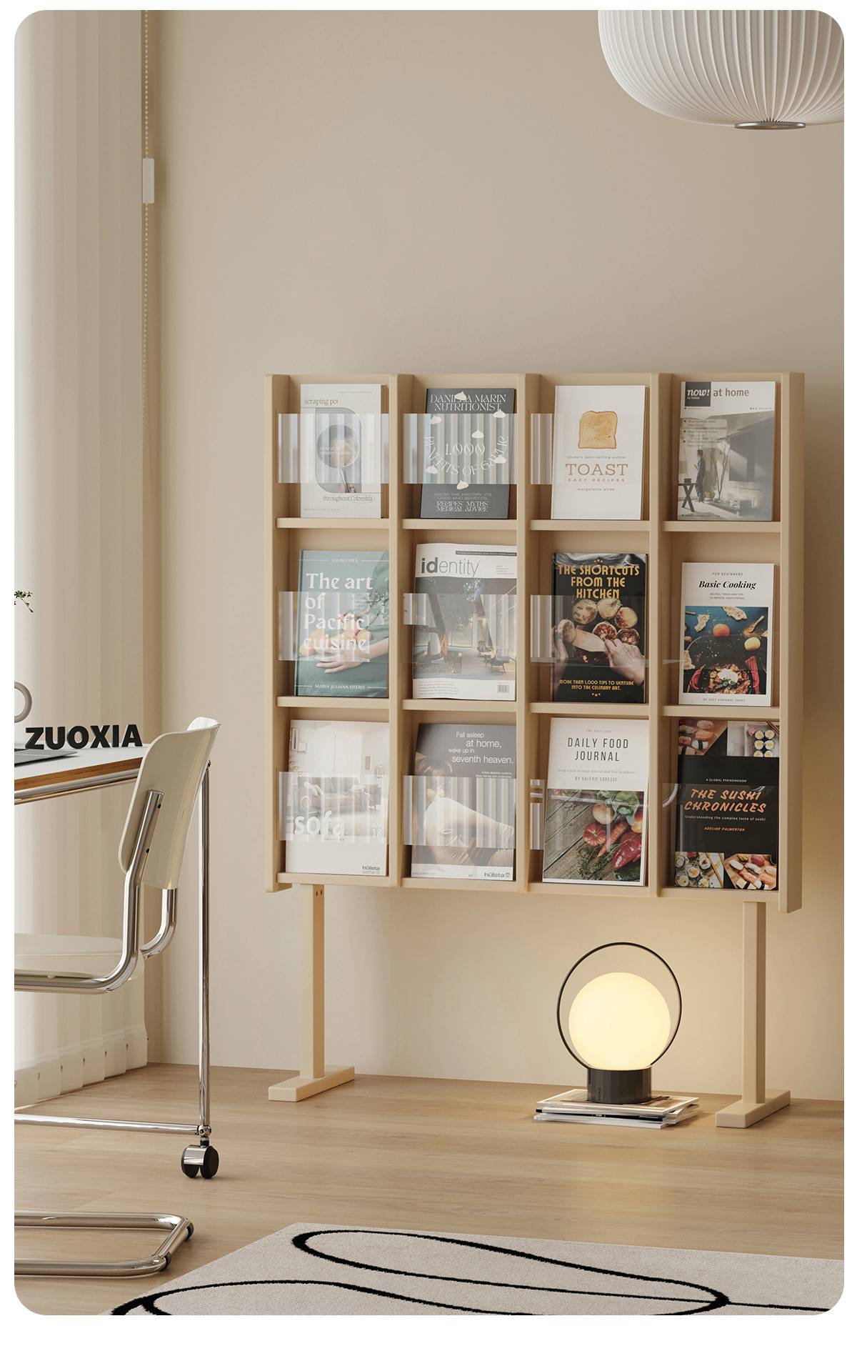 左下客厅格林书架落地中古实木阅读展示架日式报刊收纳架cd架