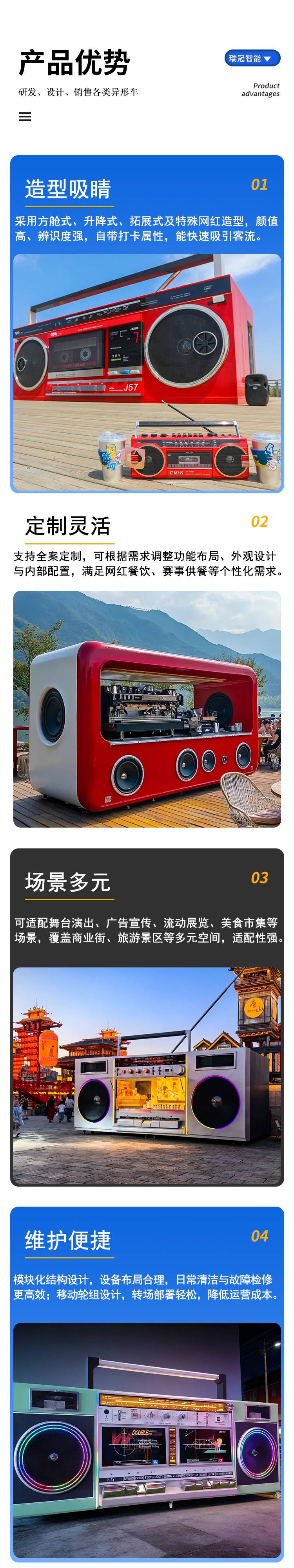 维护方便 应用于广播录音 网红收音机餐车 特殊造型 瑞冠智能