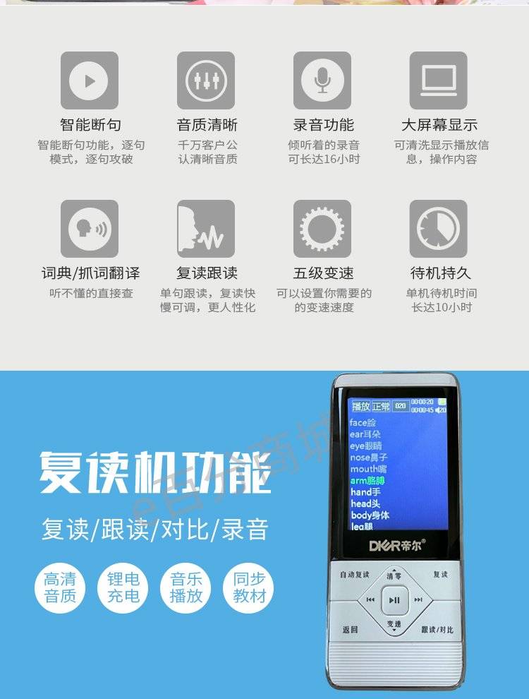 新款帝尔D60蓝牙智能复读机随身听录音学生听力播放器英语学习D39