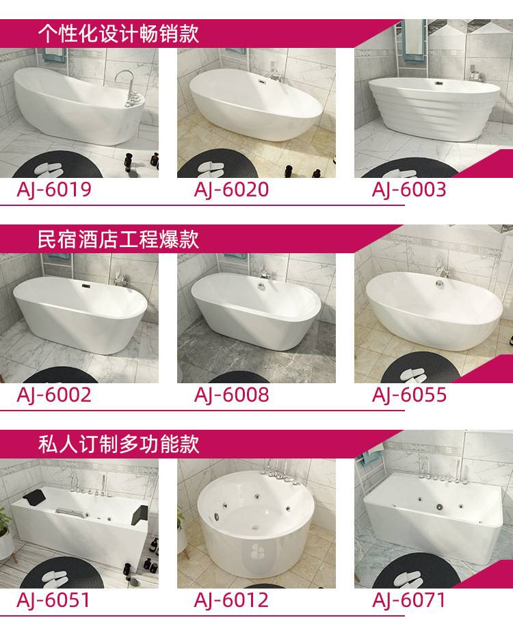 小户型长方形亚克力独立一体浴缸 佛山产地 阿基米德AJ-6075A