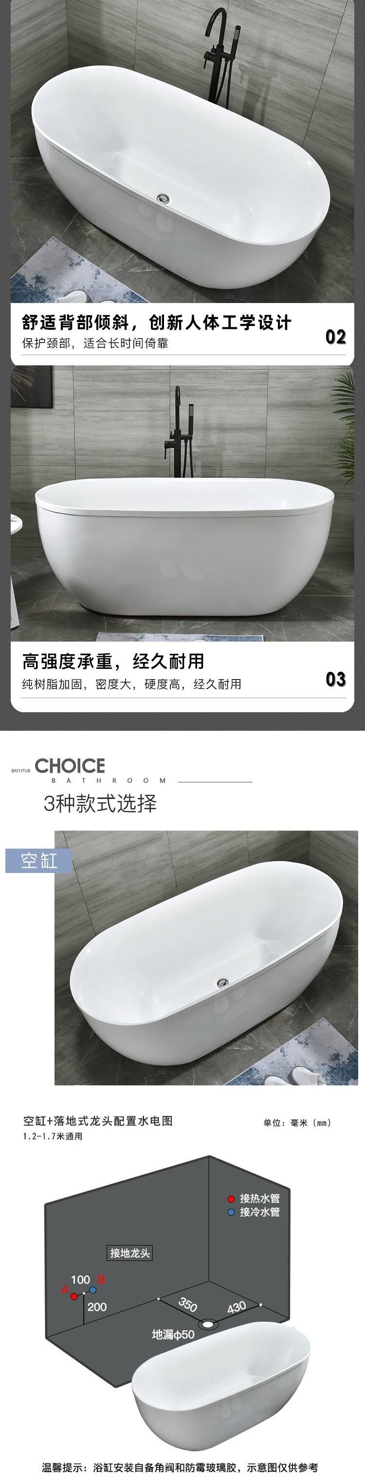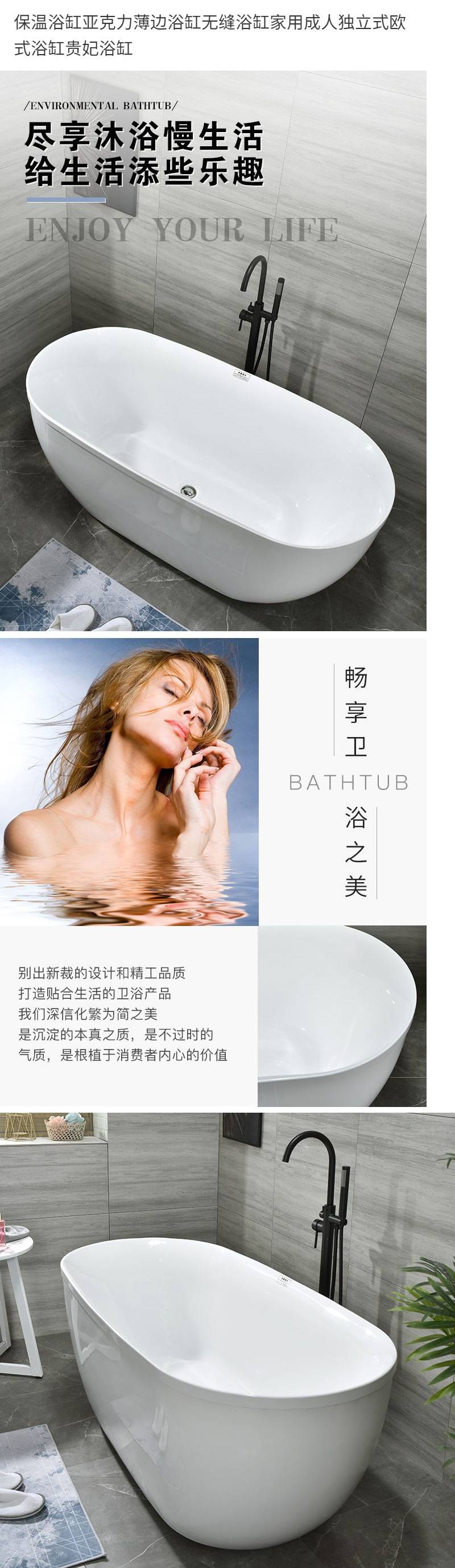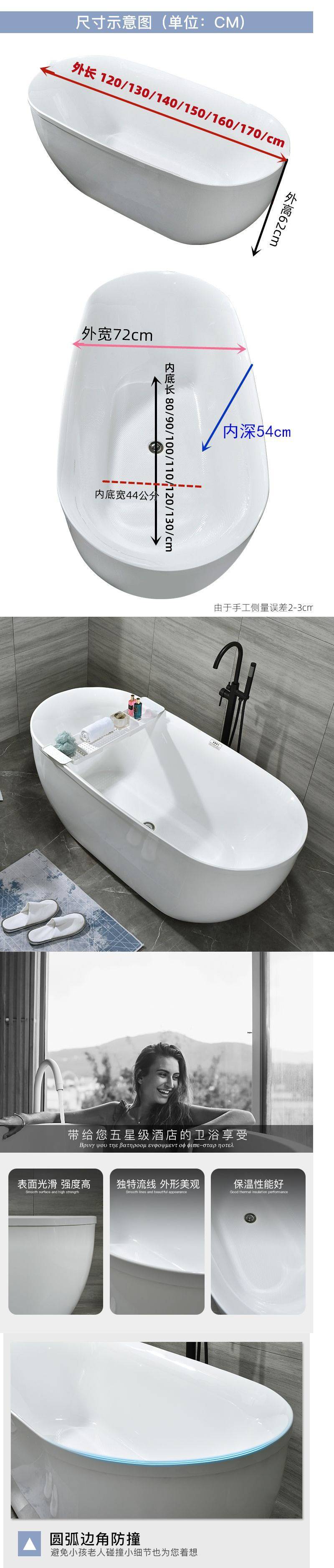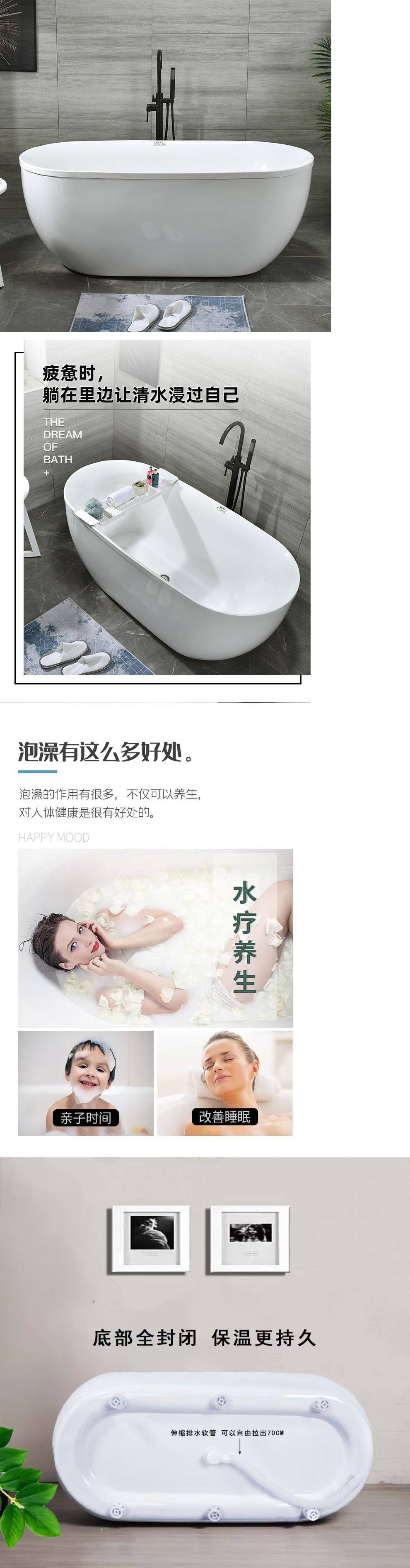 艾得乐亚克力浴缸小户型家用单人按摩独立式长方形成人简约