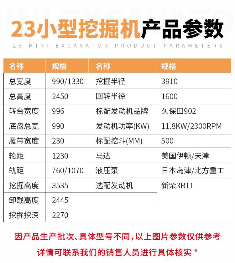 23小型挖掘机 可选配多种配件 适合长期连续作业