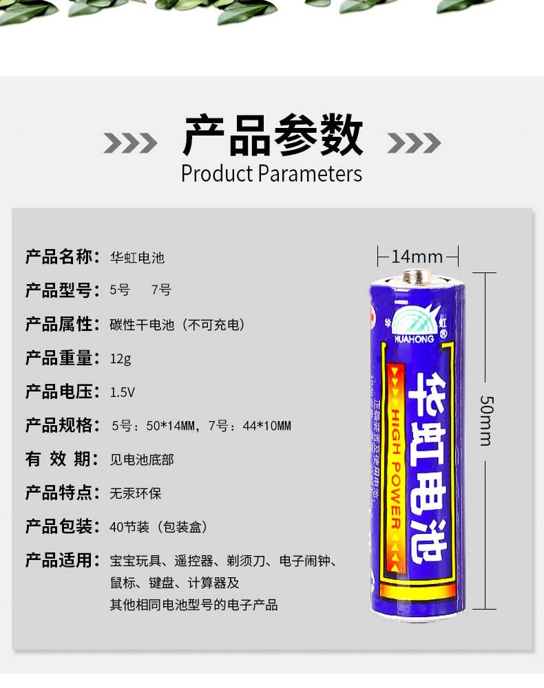 华虹普通碳性电池钟表遥控器儿童玩具用5号7号AA电池环保型干电池