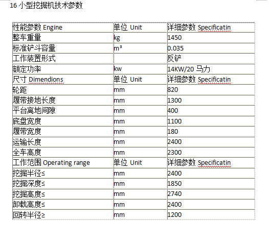 16小型挖掘机 技术参数 发货及时 适用范围 性能特点