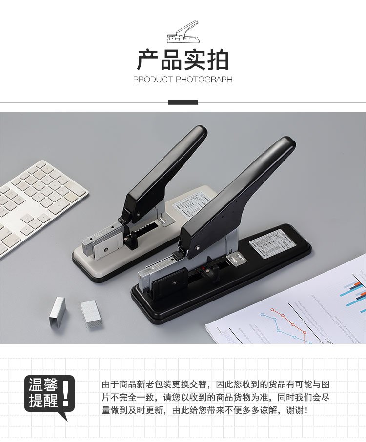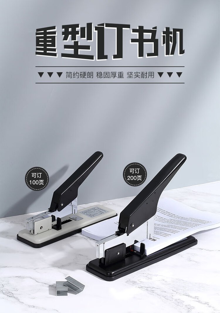 »齐心B3115重型订书机可钉100页灰色金属机身办公财务发票订书器