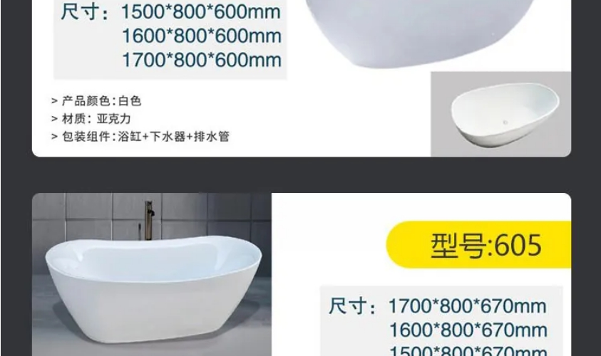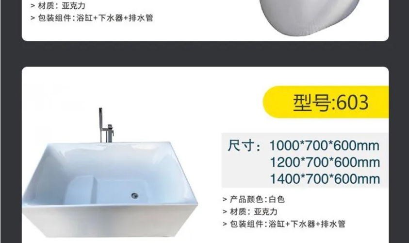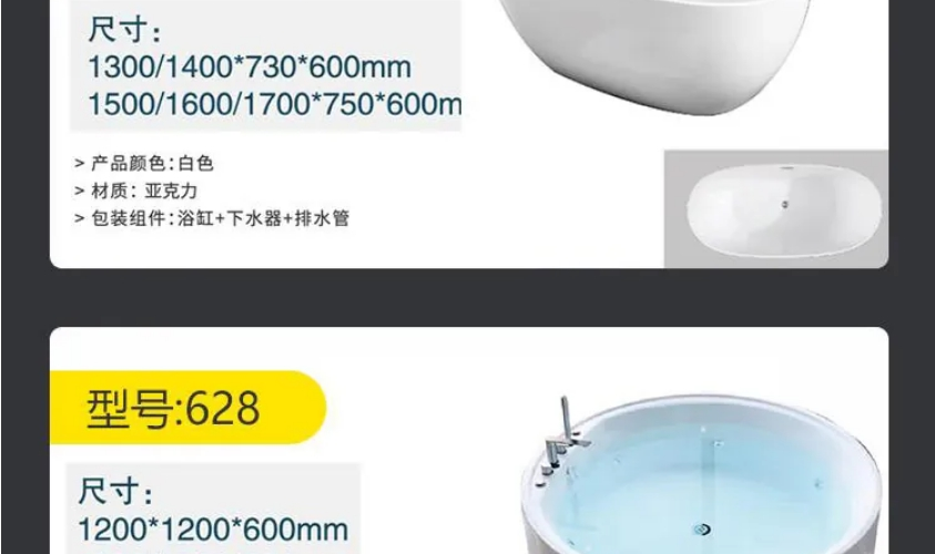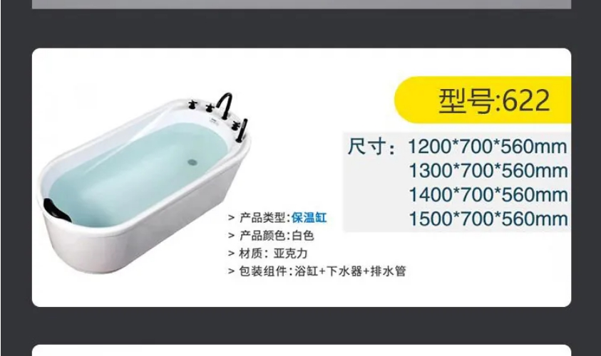 椭圆形独立卫生间成人浴缸 嵌入式小户型浴盆 家用可座可躺SPA浴池