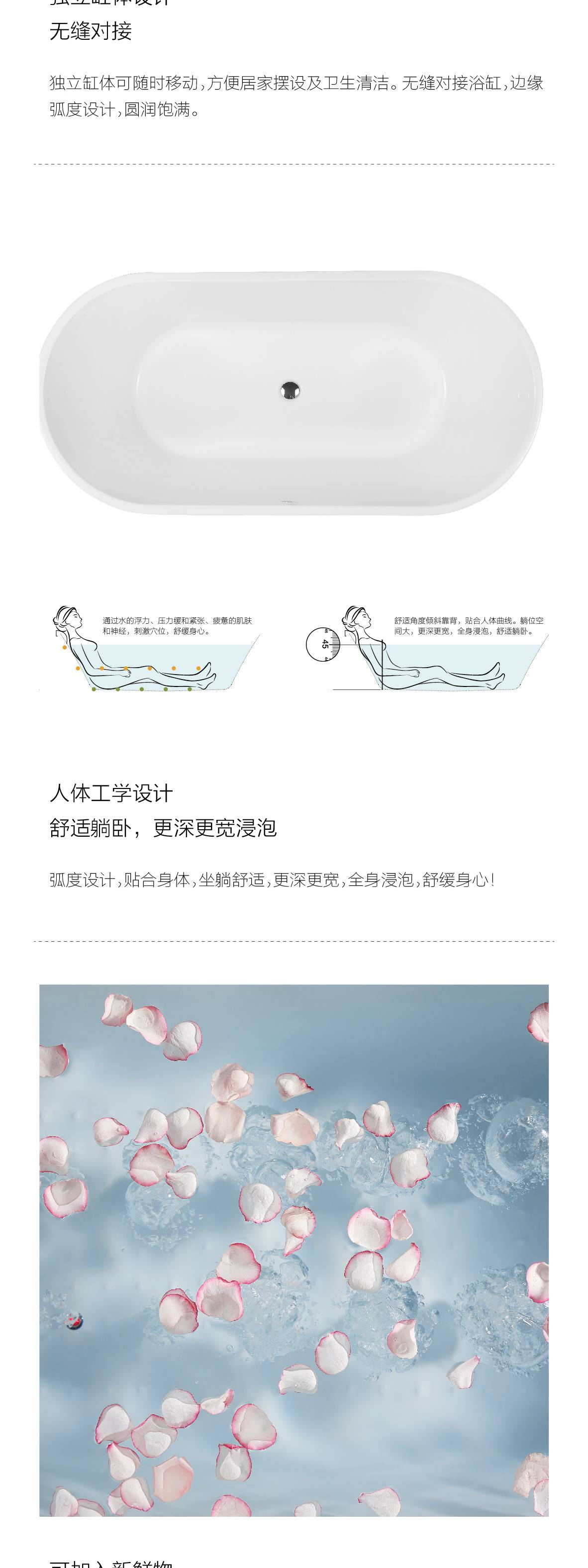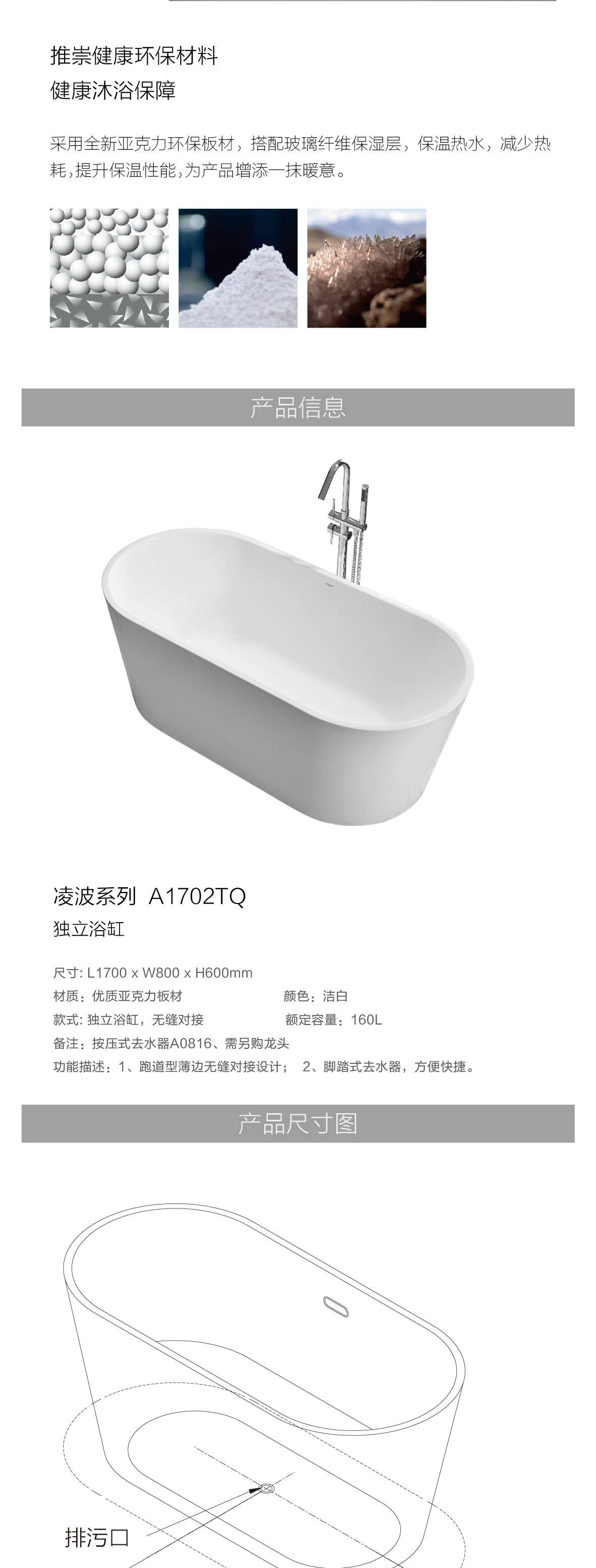 独立式家用卫生间 亚克力浴缸A1702TQ 椭圆形 厂家支持定制 工厂批发