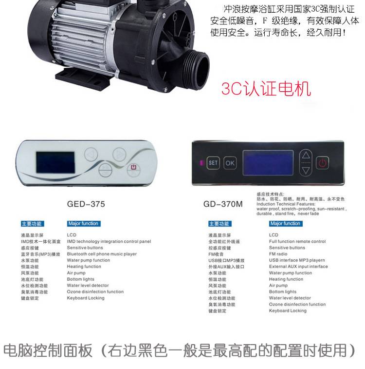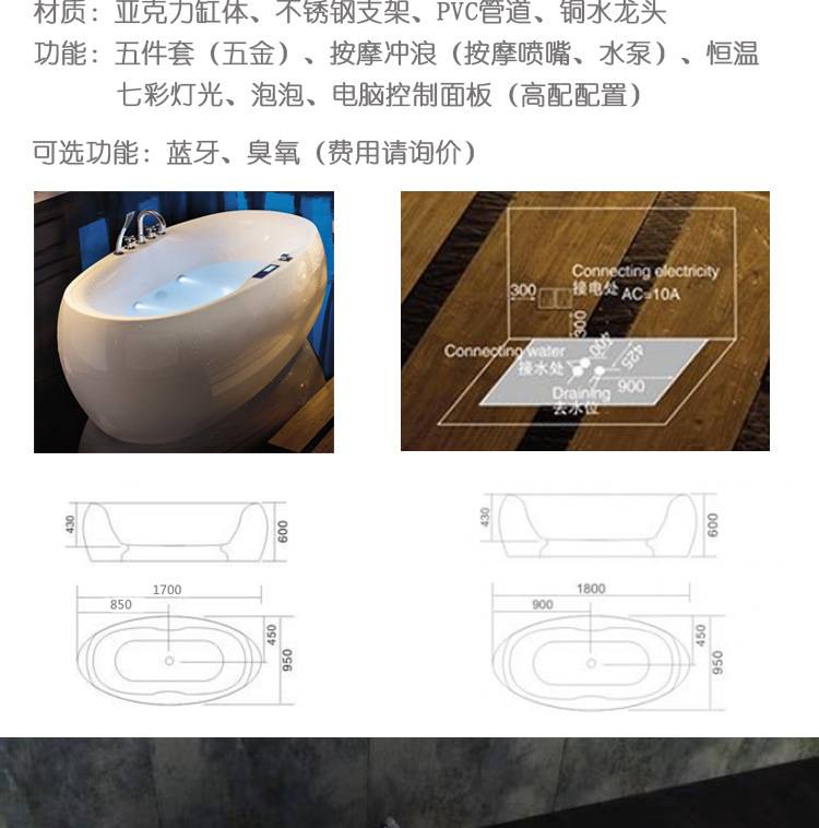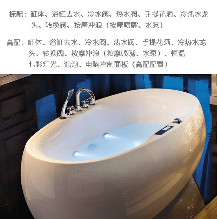 源头厂家 独立式亚克力按摩浴缸椭圆形家用民宿酒店浴池Jacuzzi
