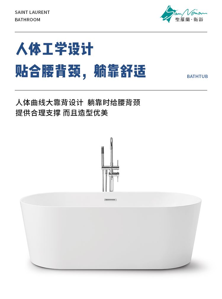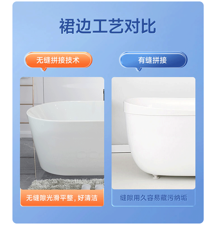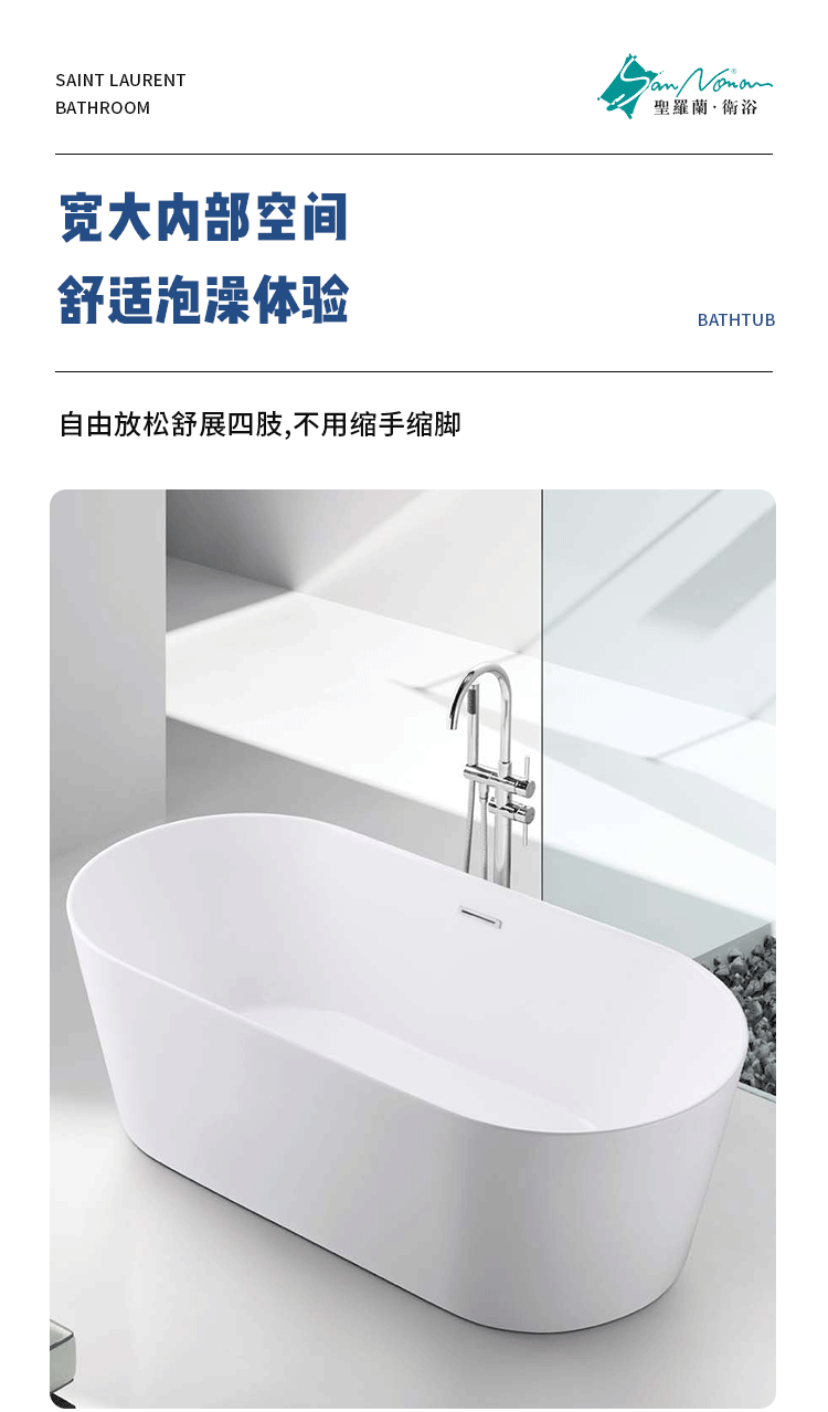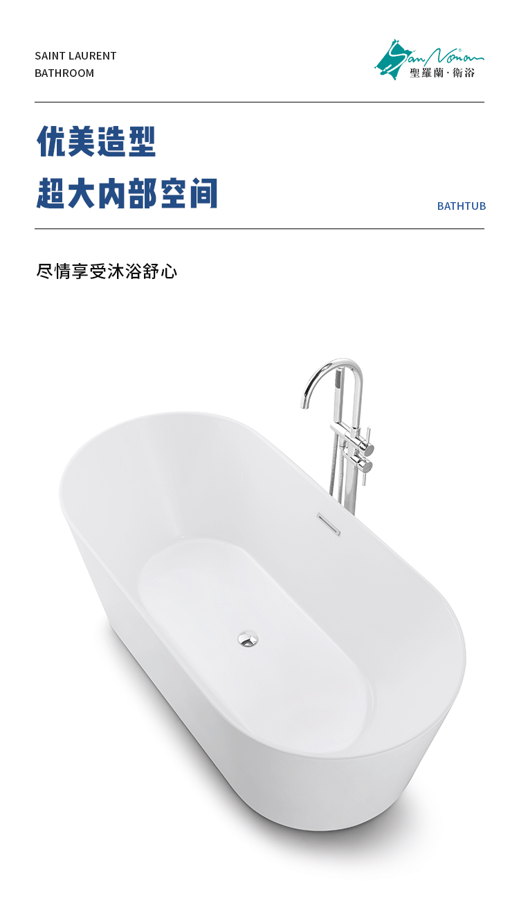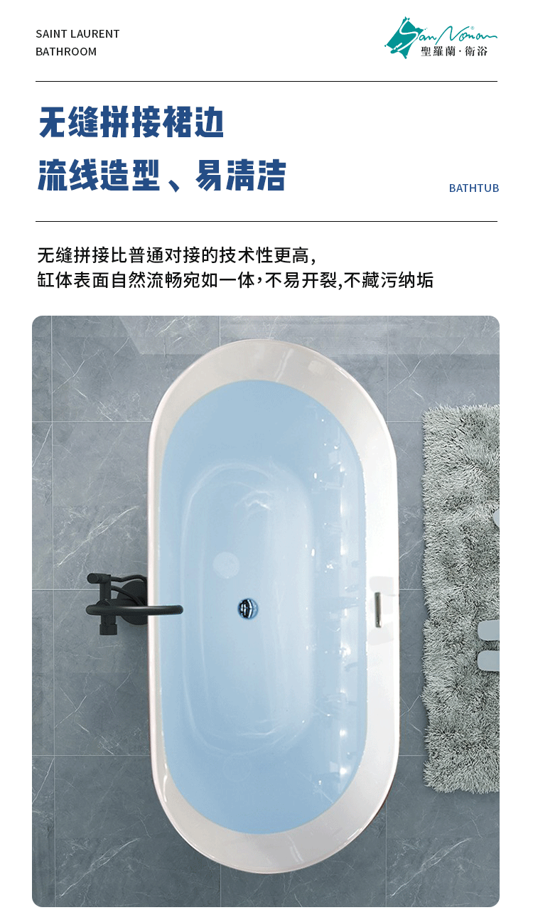 厂家直销北欧简约椭圆形亚克力独立式一体浴缸薄边空缸可配五件