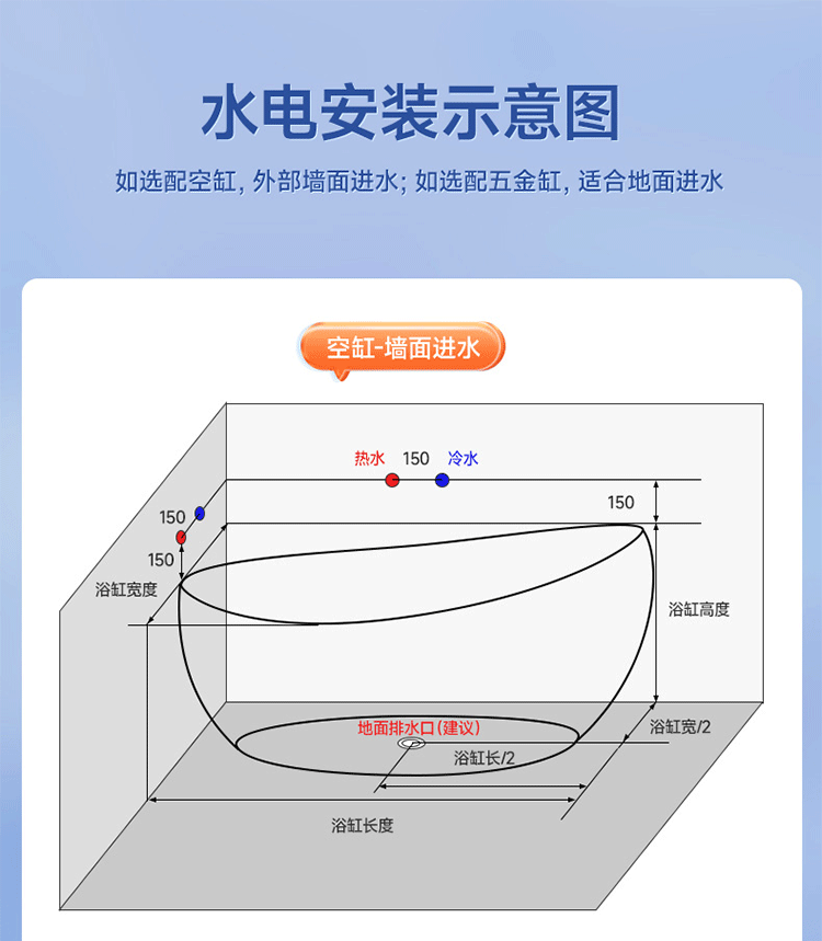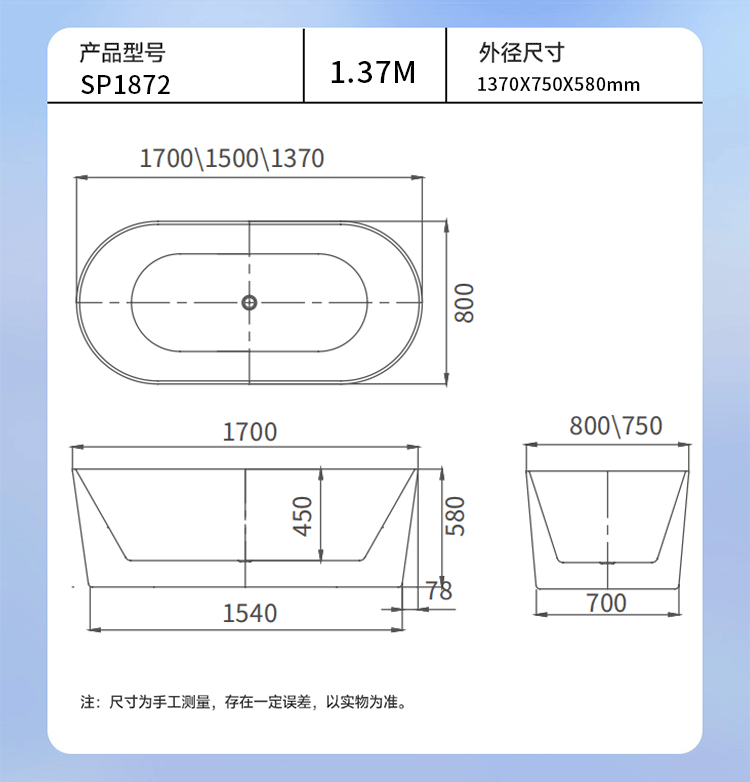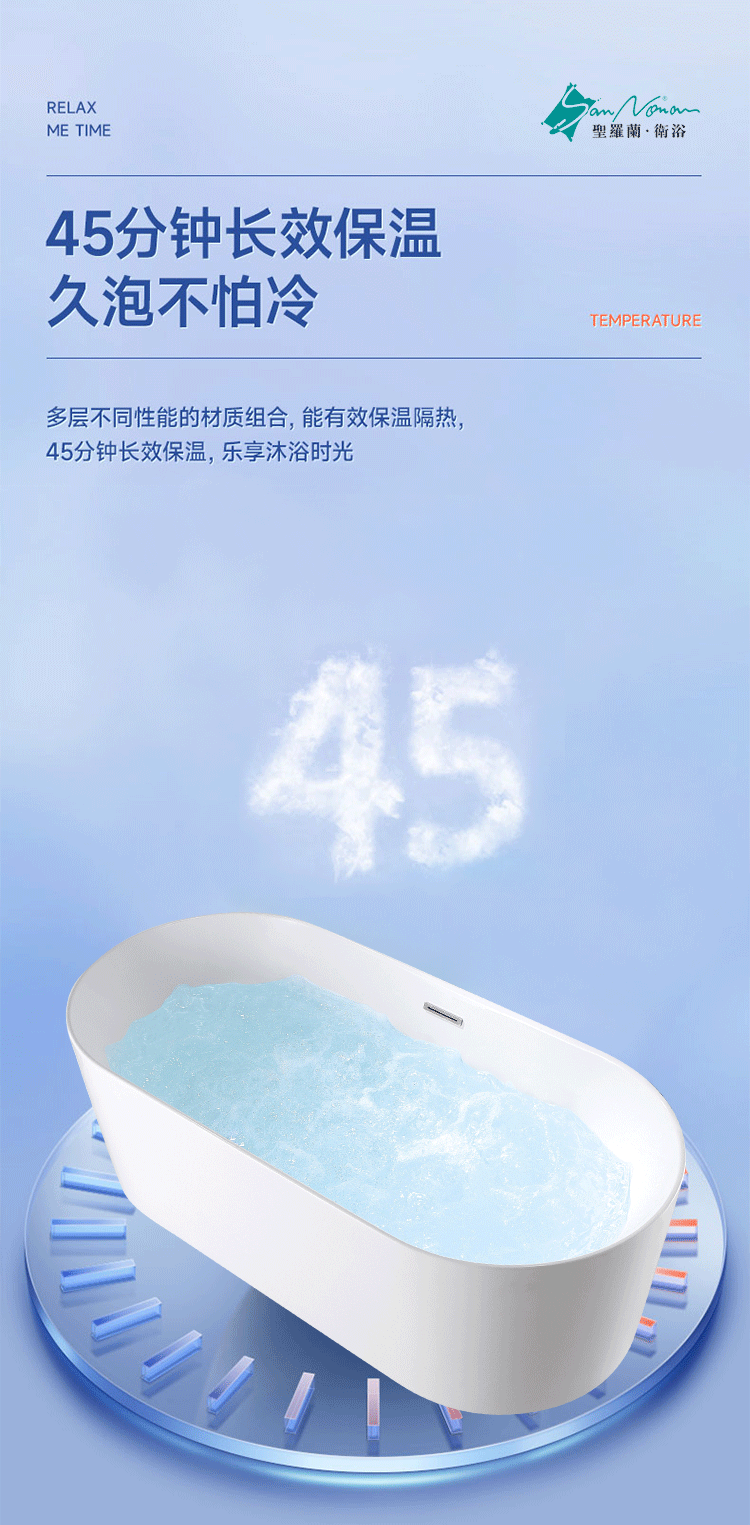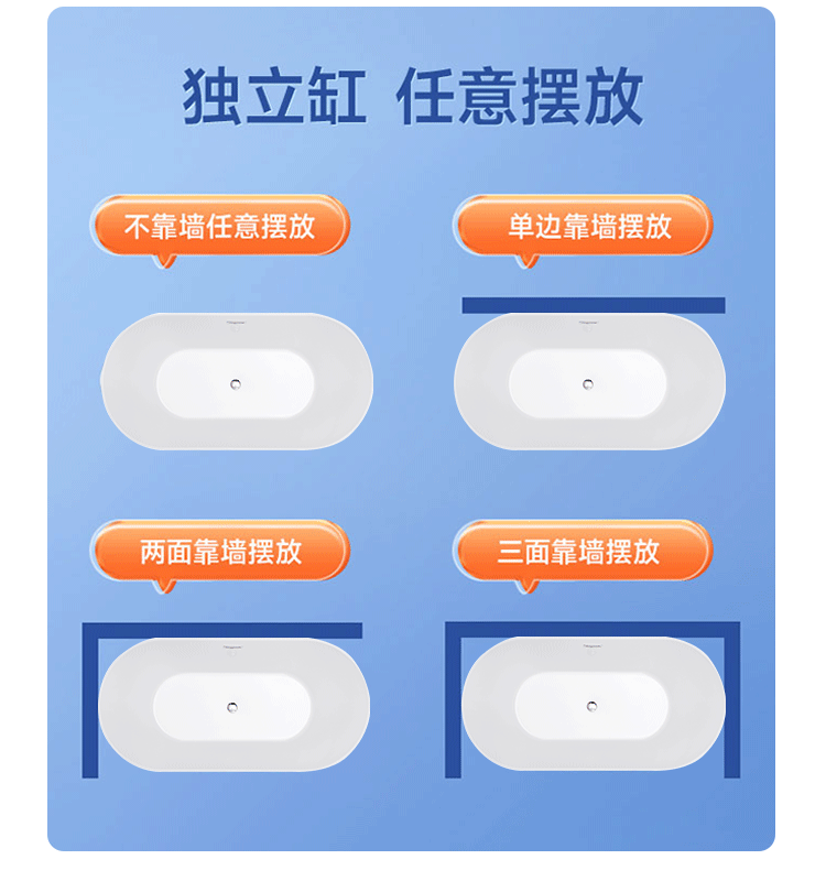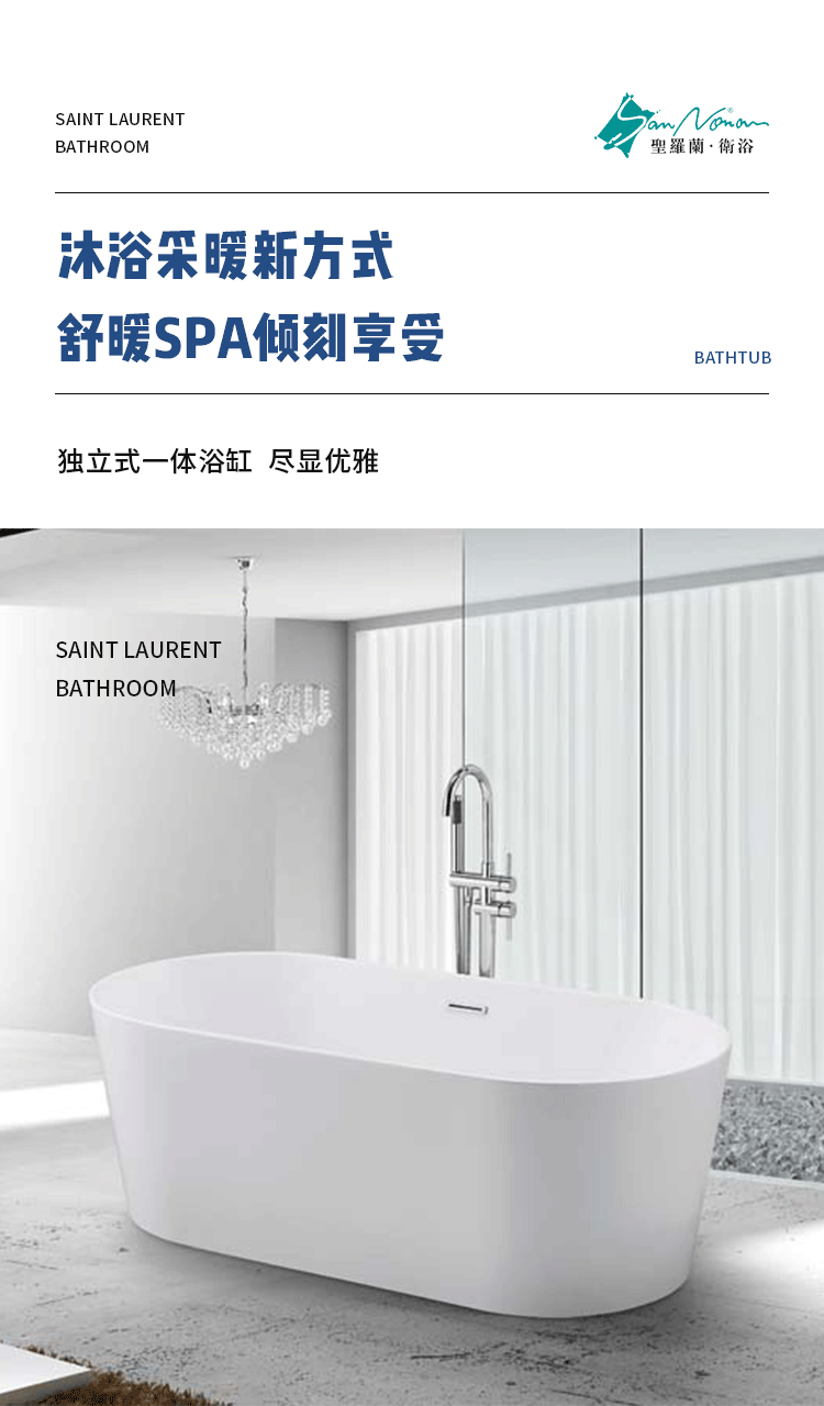 厂家直销北欧简约椭圆形亚克力独立式一体浴缸薄边空缸可配五件
