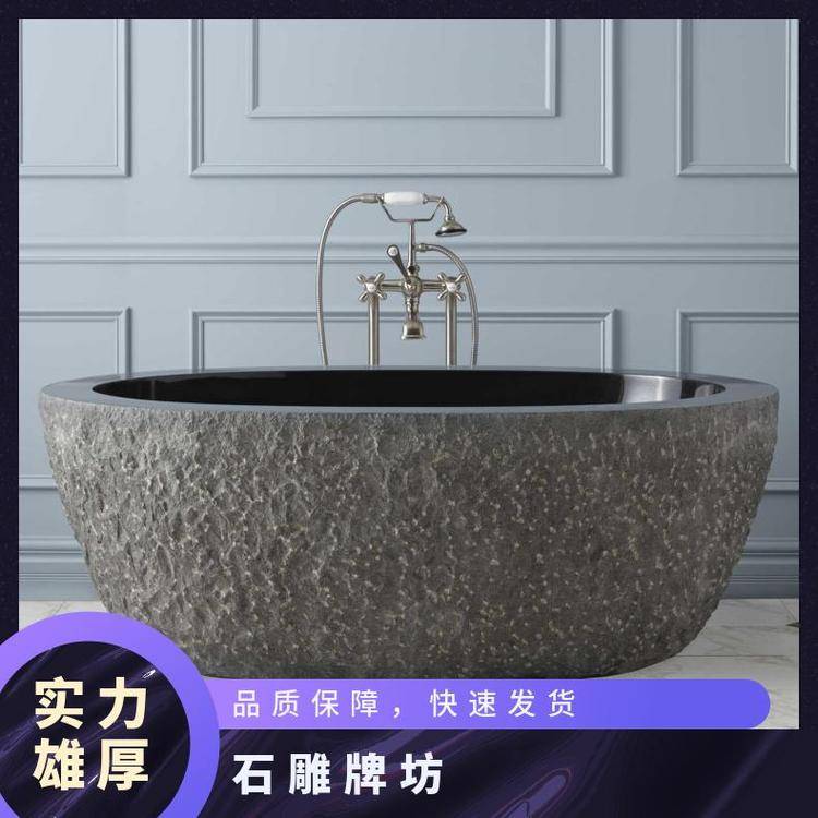 石雕浴缸 现代别墅酒店天然石材椭圆形泡澡缸 厂家定制加工