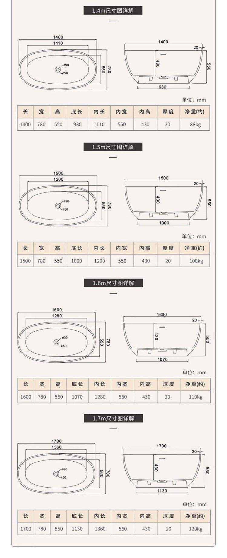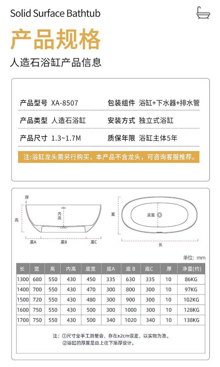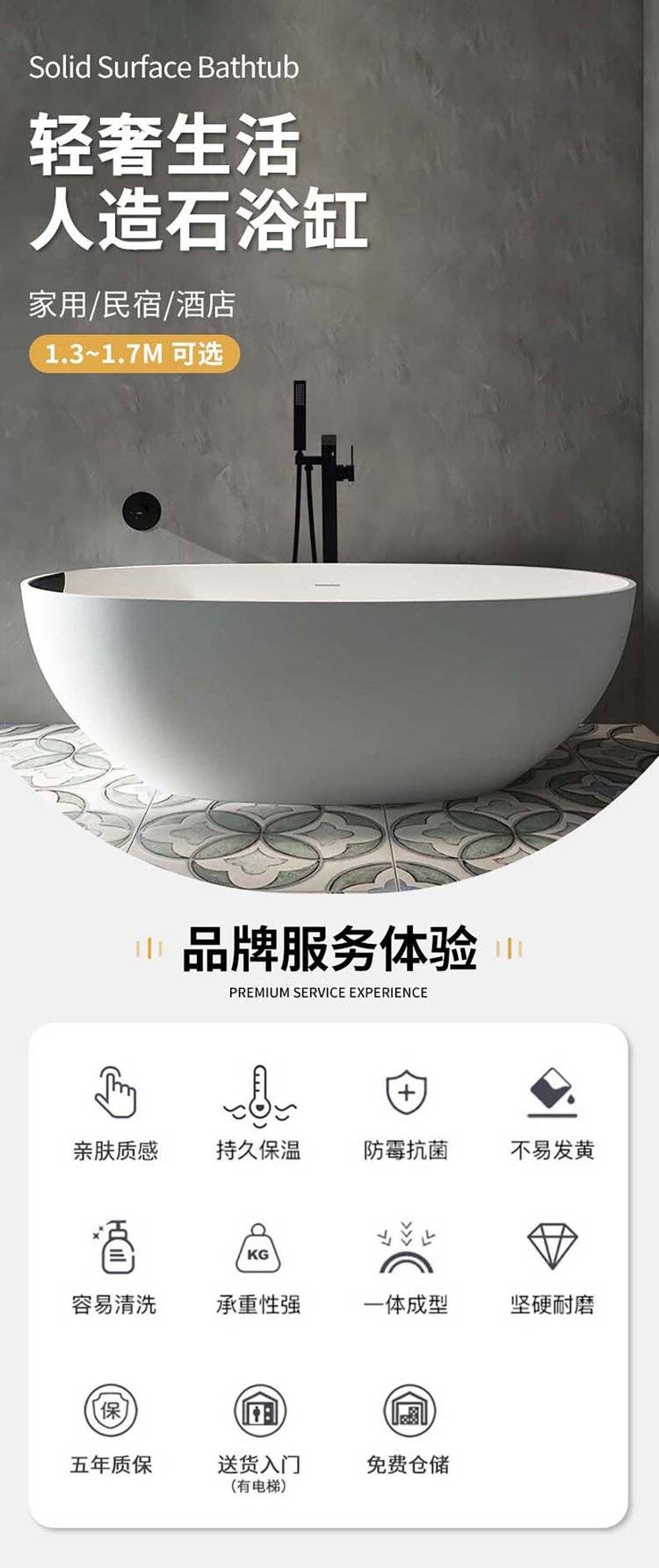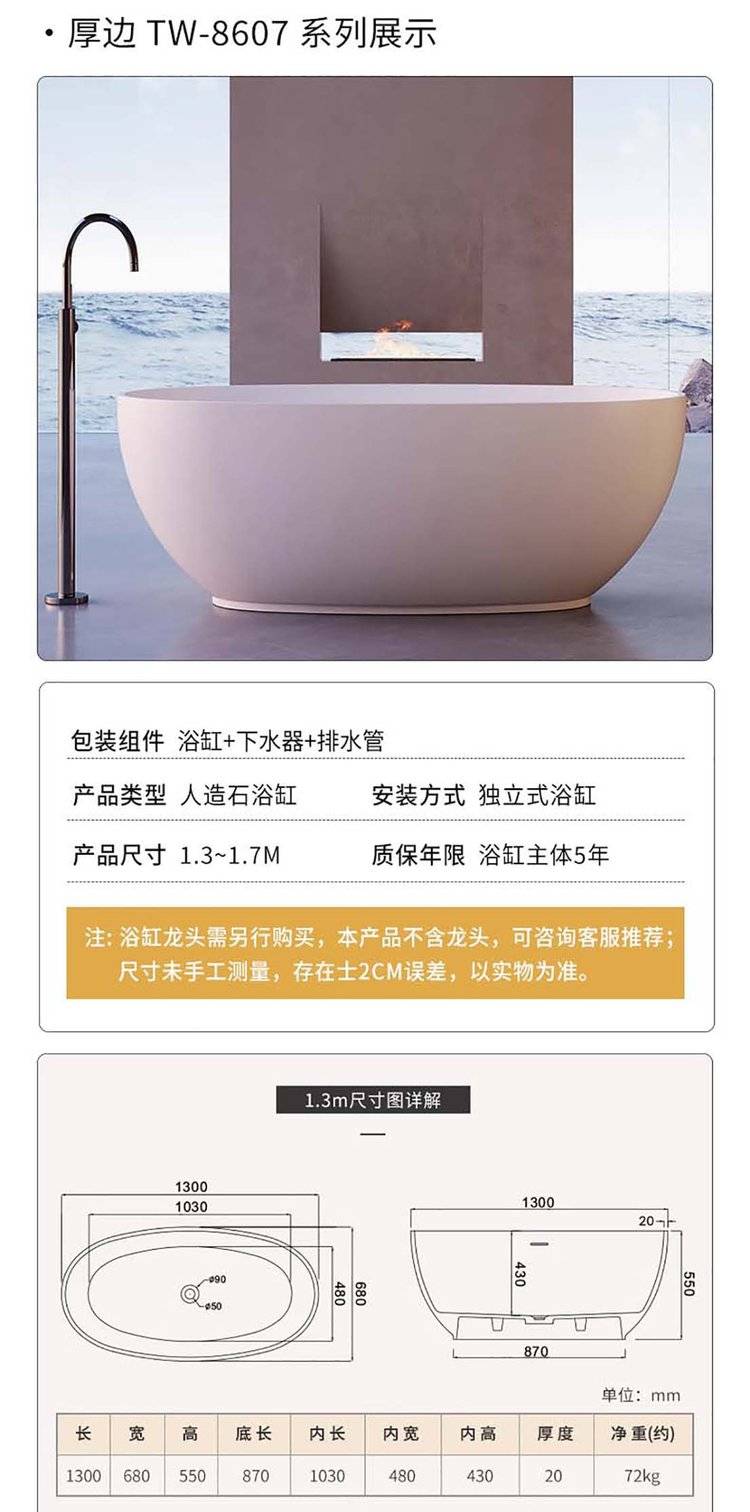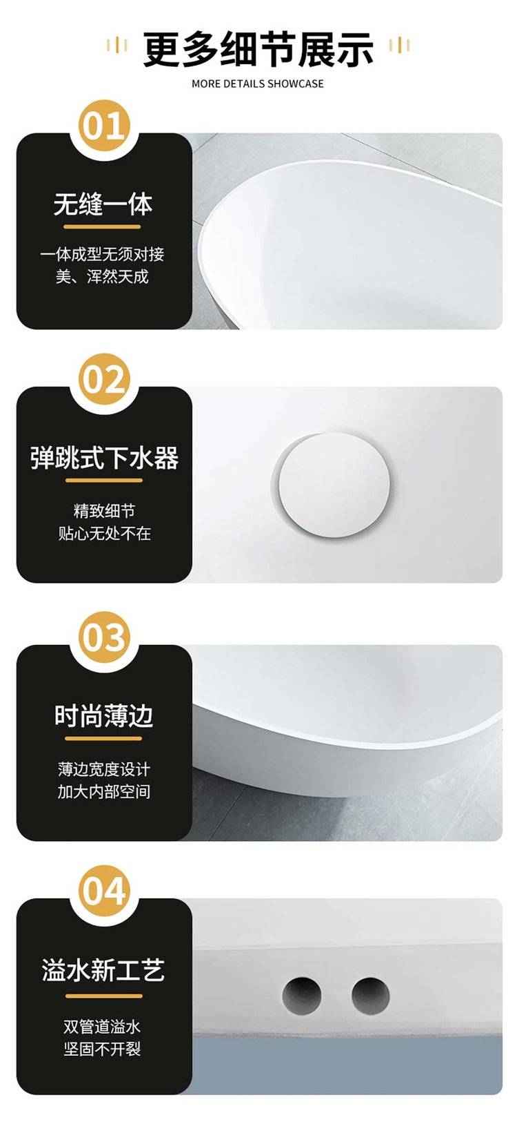独立式人造石椭圆形浴缸 家用轻奢酒店民宿卫浴