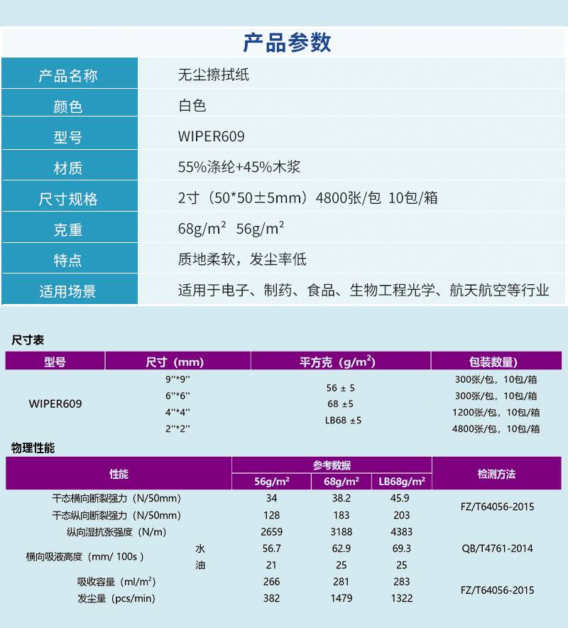 批发无尘纸白色无纺布609吸水油除尘洁净室电子车间工业擦拭纸