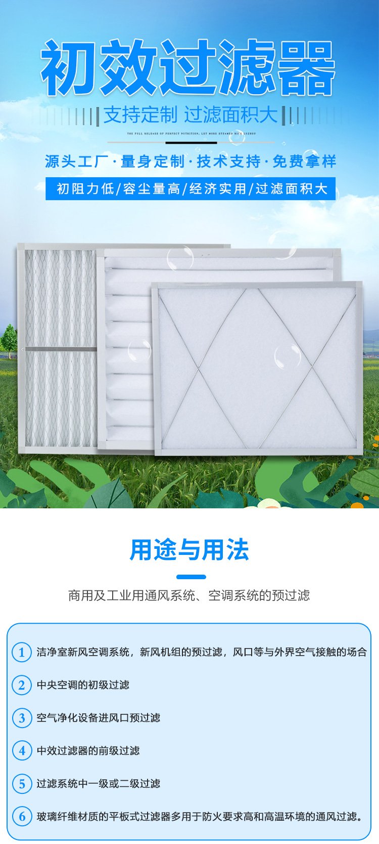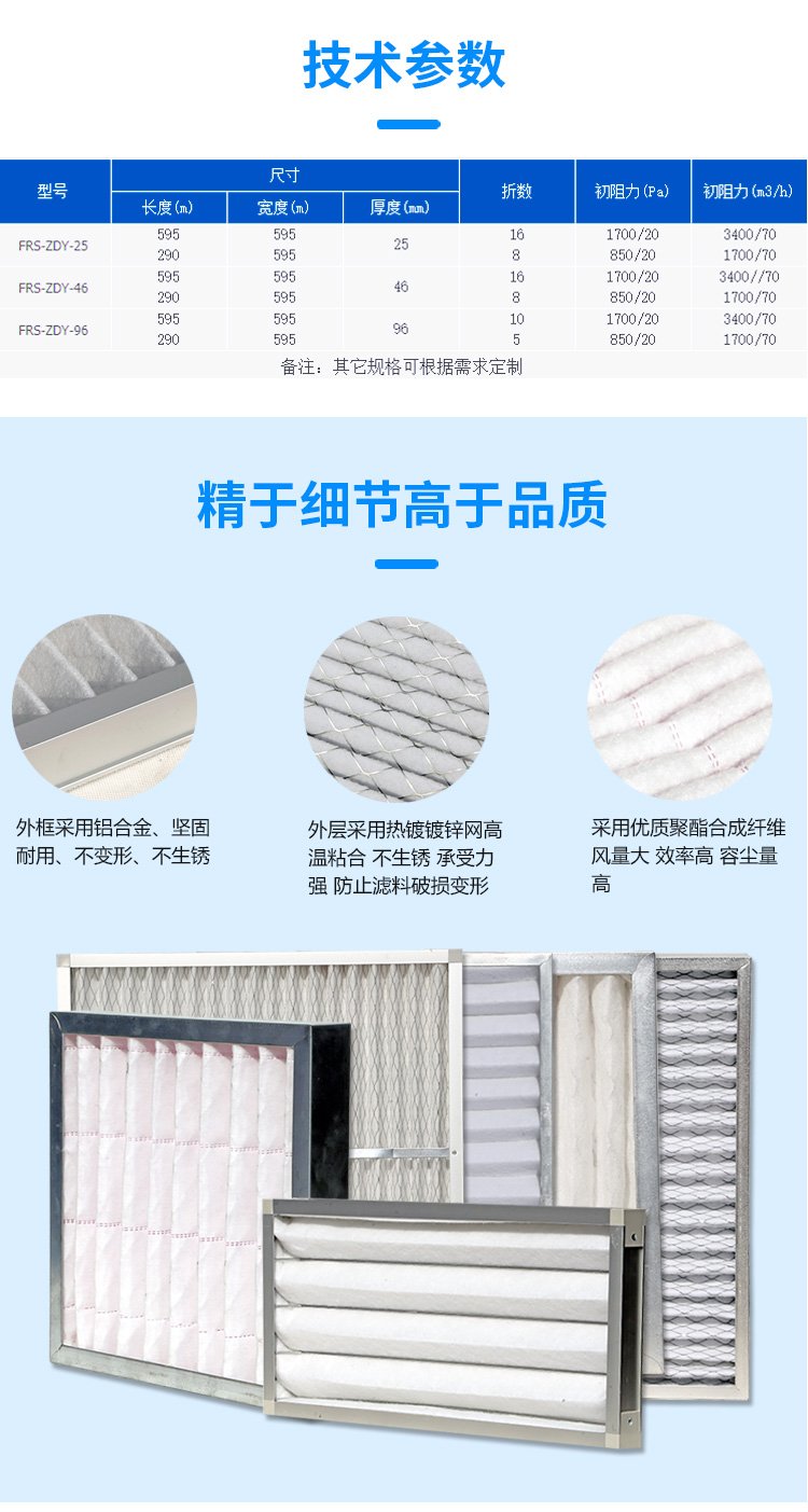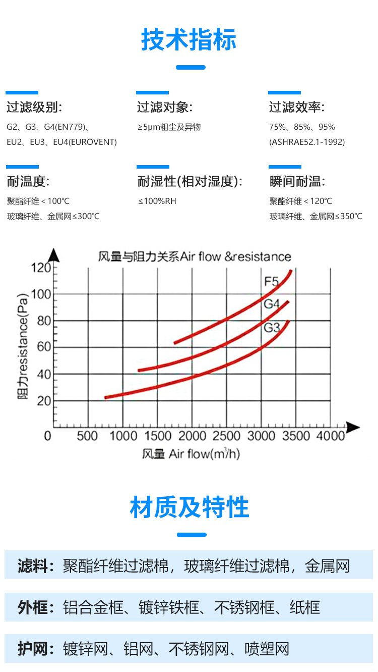 蓝色天空 除尘效果好 出货快 可制作纸框 大风量 初效空气过滤器