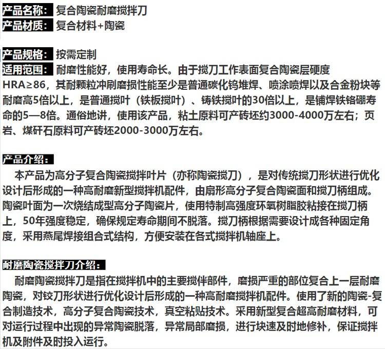 定制 复合耐磨砂搅刀搅拌叶 砖机配件铰刀 陶瓷搅拌刀各种尺寸