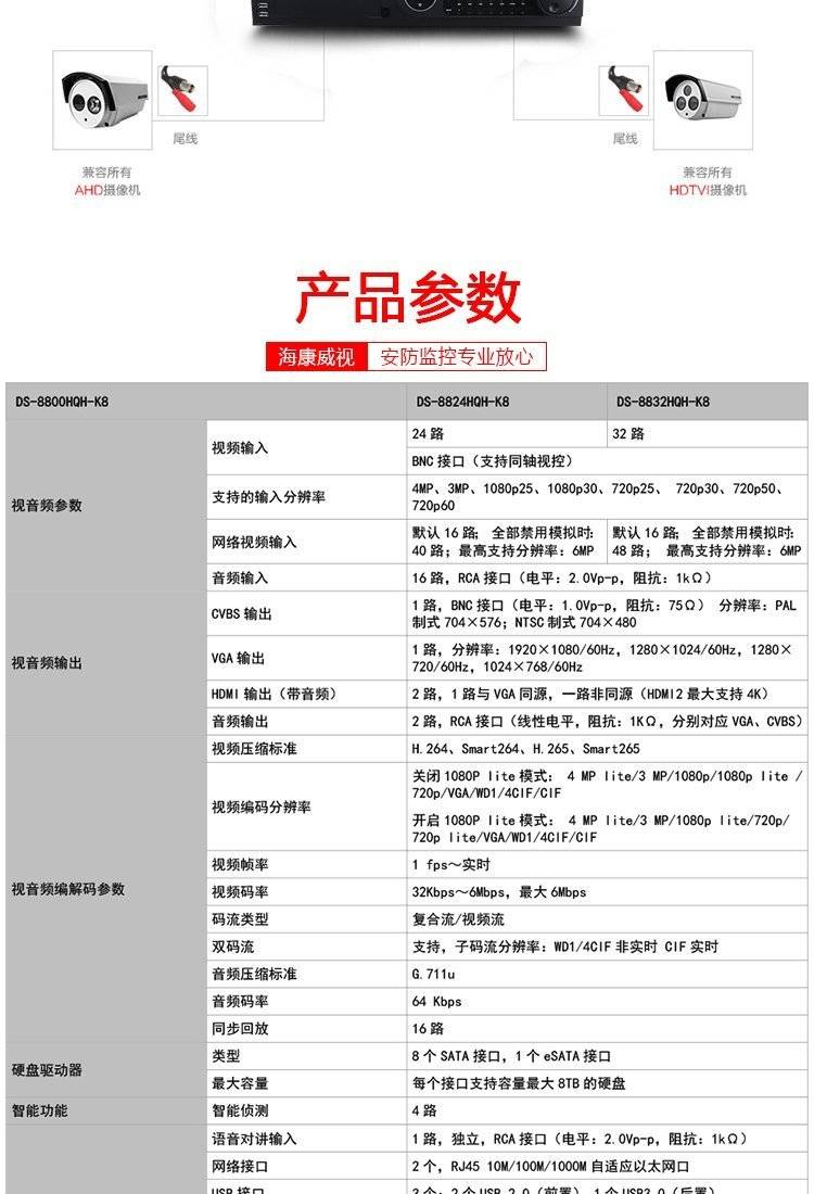 海康威视 32路同轴网络模拟硬盘录像机DVR 八盘 DS-8832HQH-K8