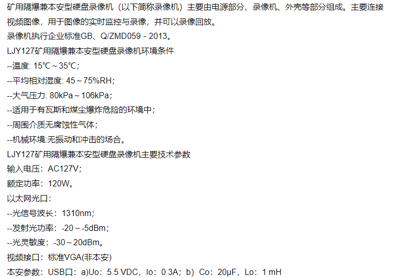 LJY127矿用隔爆兼本安型硬盘录像机