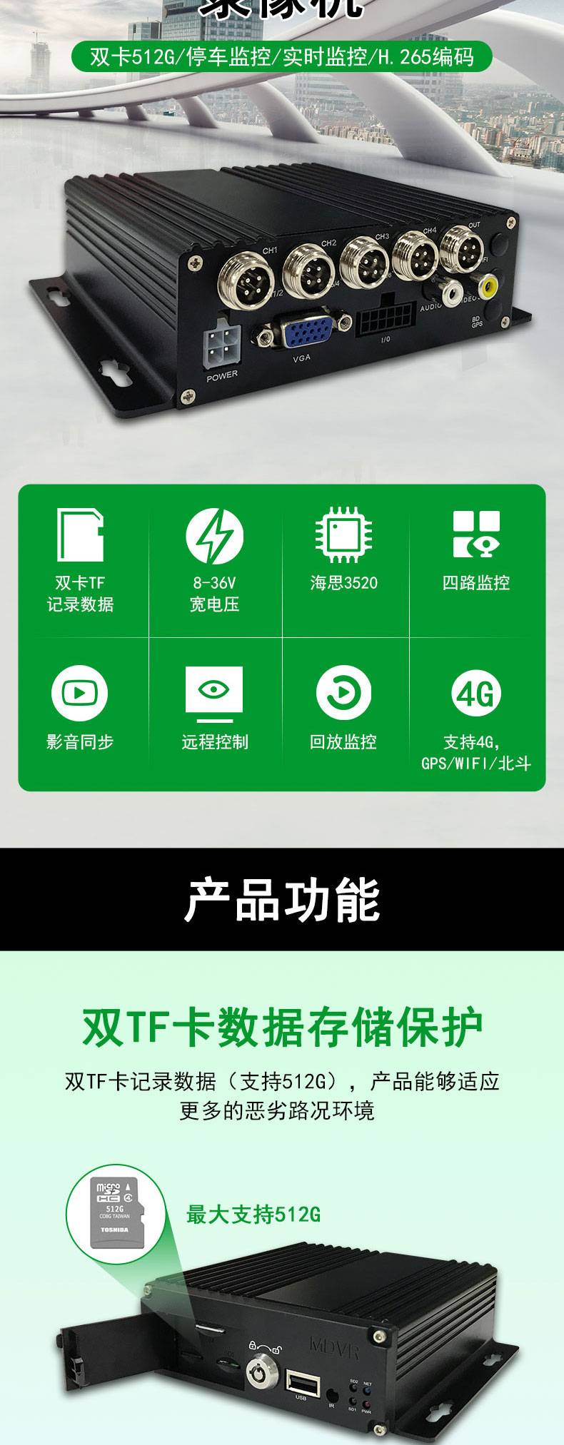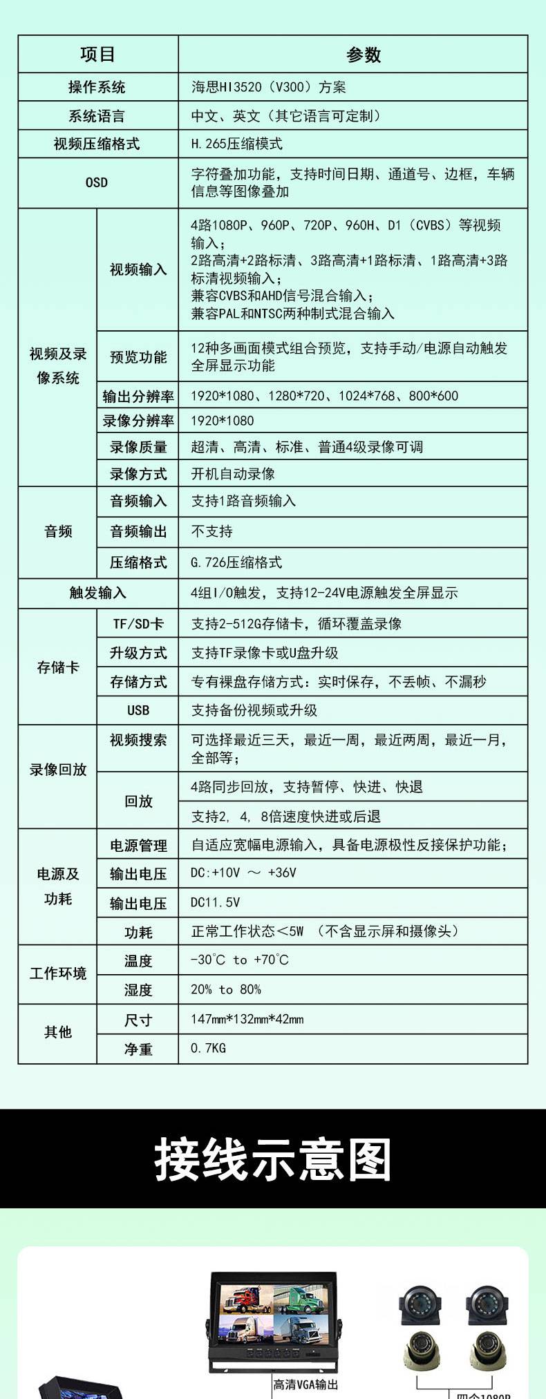 邮科4GGPS1080P四路卡机车载录像机货车客车高清全景监控一体