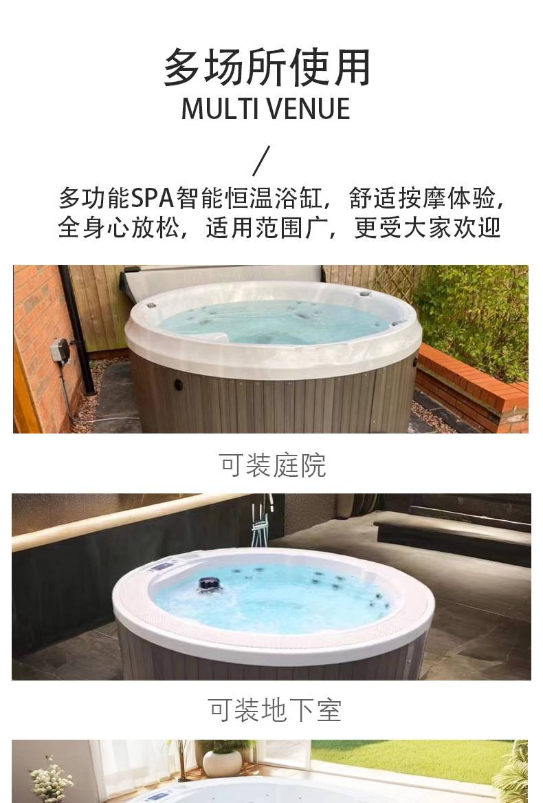 民宿专用多种方式安装按摩浴池户外恒温多人spa圆形浴缸厂家专供
