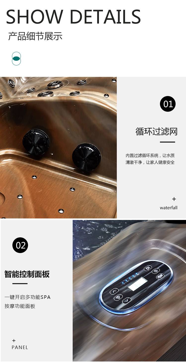 户外庭院SPA水疗浴缸多人别墅温泉冲浪恒温加热按摩圆形民宿泡池