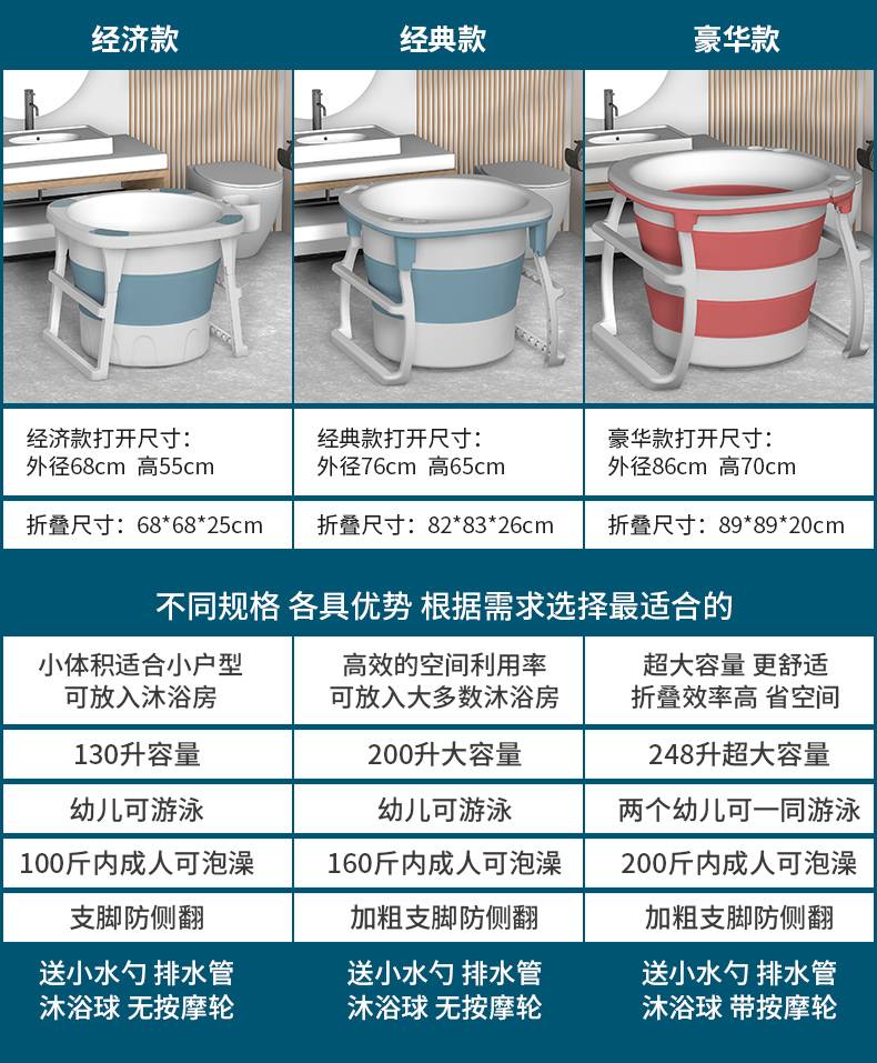 成人泡澡桶大人可折叠浴桶浴缸加高儿童沐浴盆全身圆形洗澡桶家用