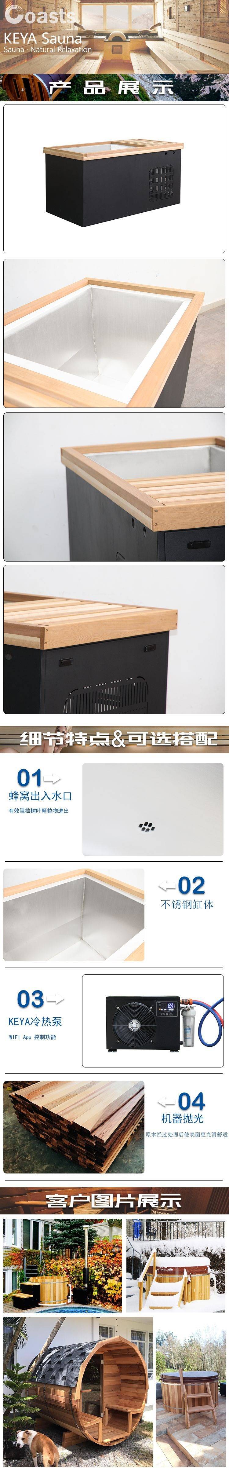 柯仕 木制户外冷水浴缸冰桶圆形单人冰浴桶冷热机两用