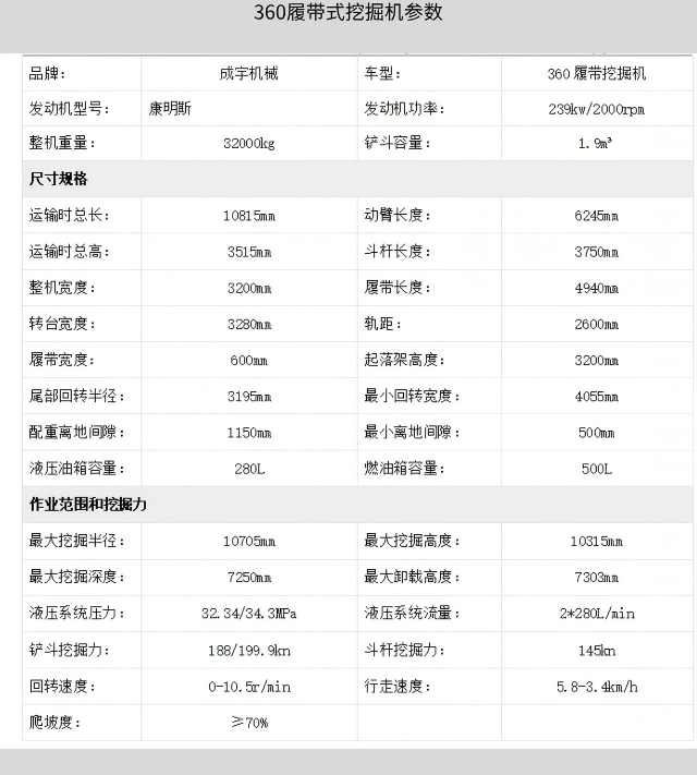成宇履带式挖掘机 作业稳定 牵引力足 适合松软泥泞地形 挖掘 机厂家