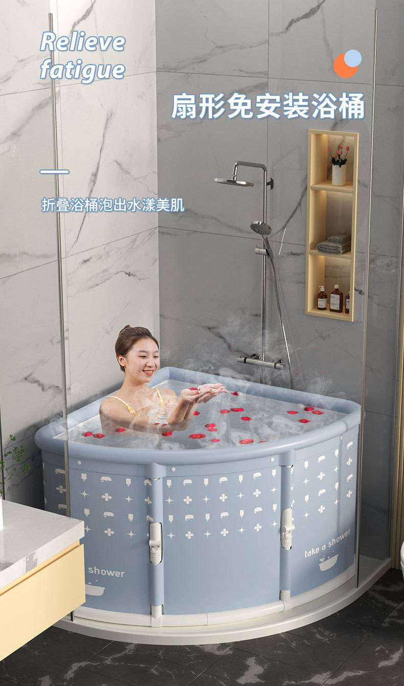 泡澡桶大人折叠扇形洗澡桶家用沐浴桶三角转角浴缸成人淋浴房专用