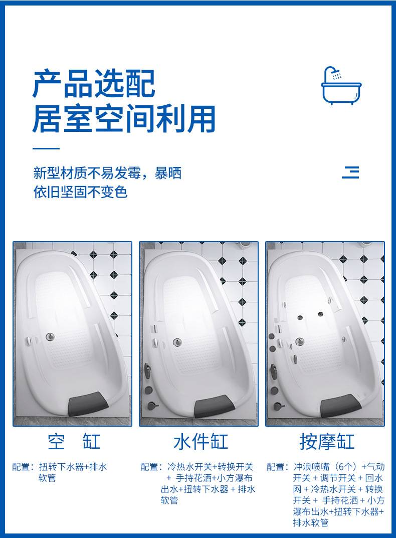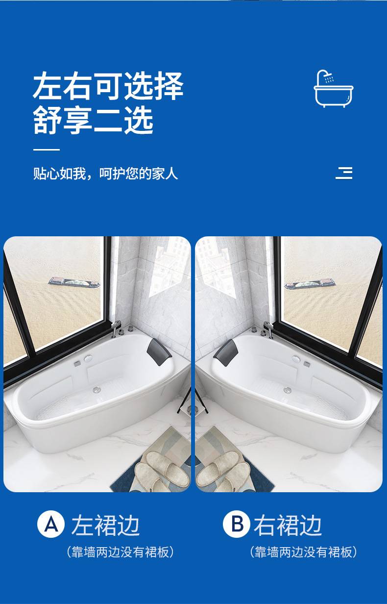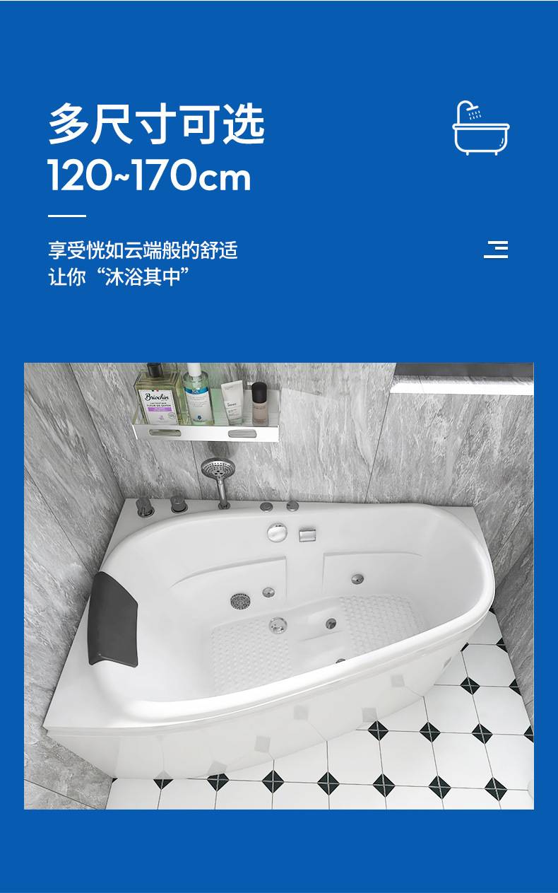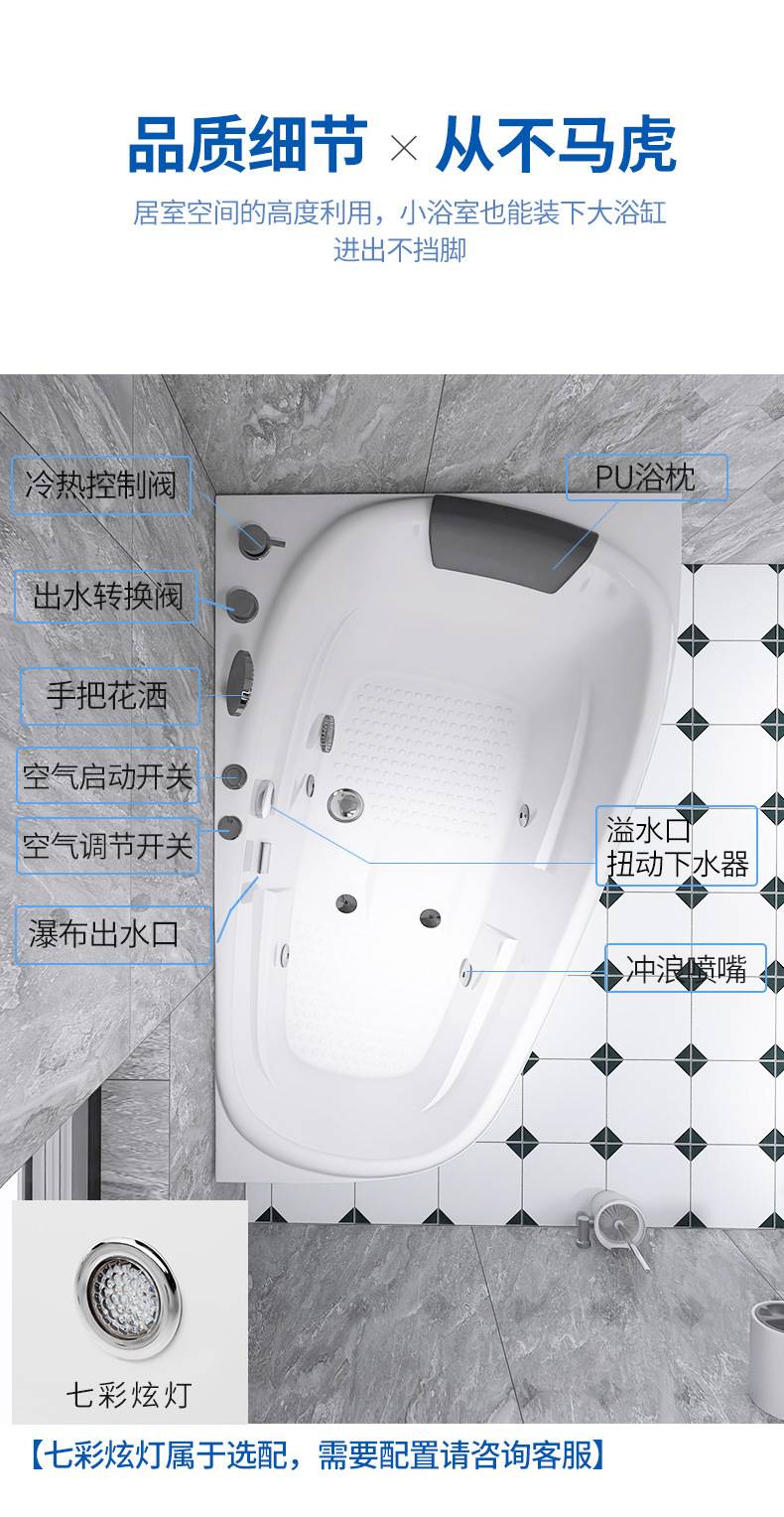弧形按摩浴缸小户型卫生间浴缸异形冲浪恒温浴缸家用成人泡澡浴池
