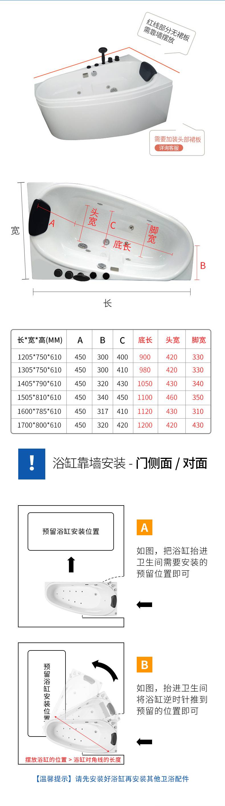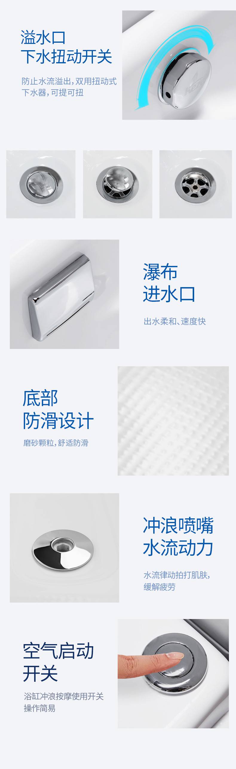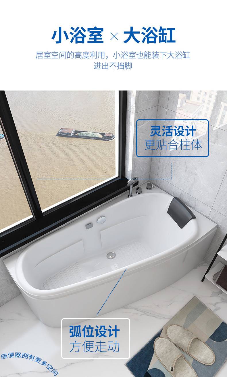弧形按摩浴缸小户型卫生间浴缸异形冲浪恒温浴缸家用成人泡澡浴池