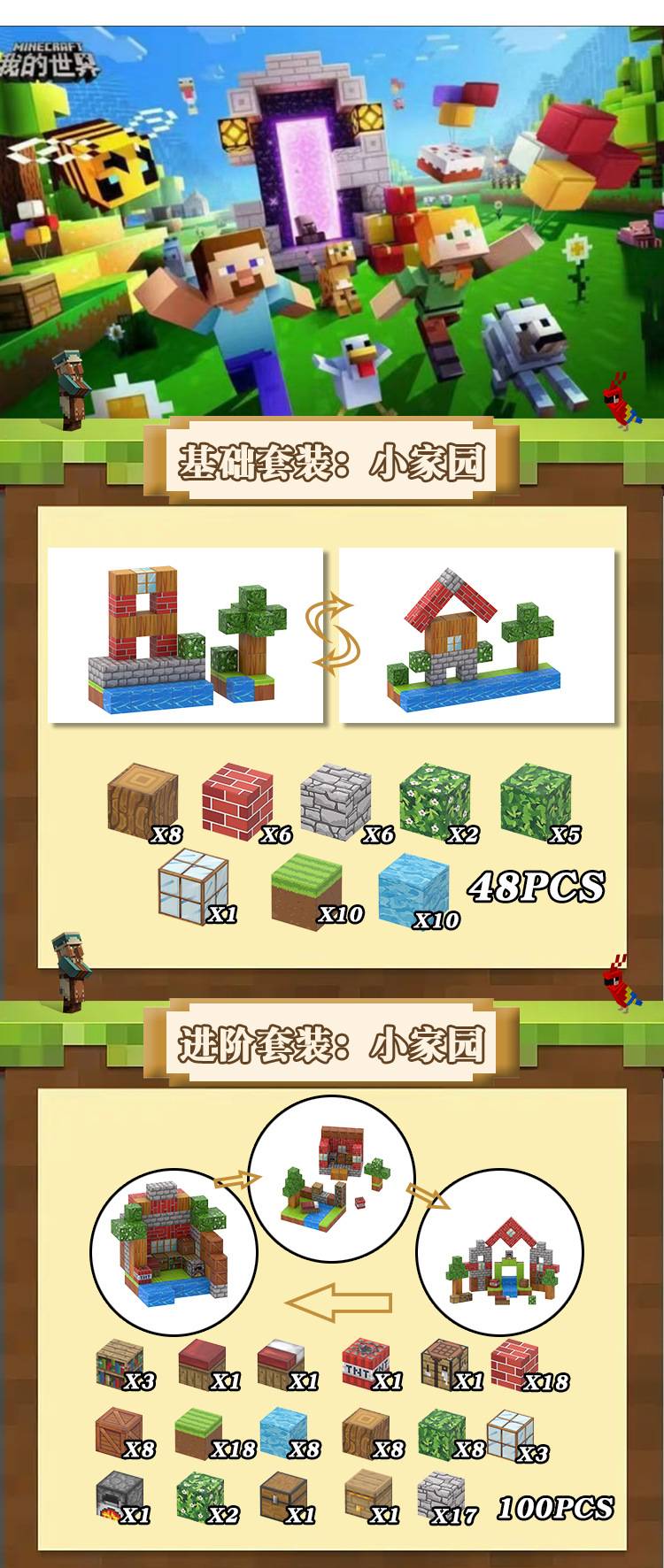 创建世界树屋小屋积木周边方块砖磁块动物自然益智男女童礼物玩具
