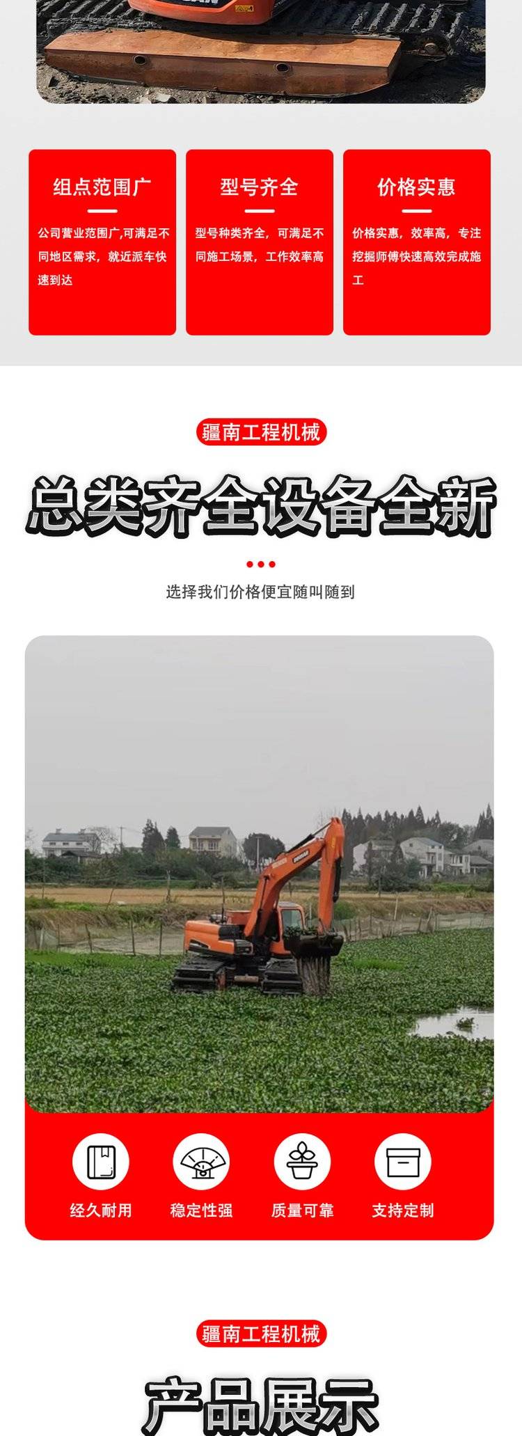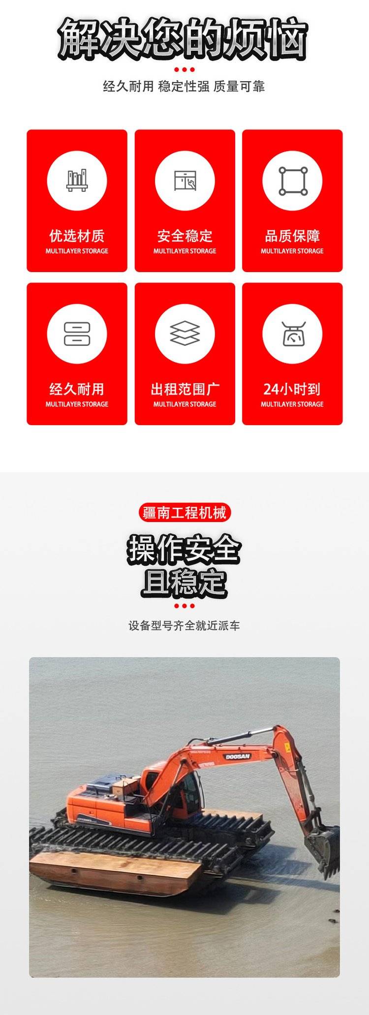 河道清淤水陆挖掘机租赁 水路挖土机出租费用 河道治理 堤坝培高加固
